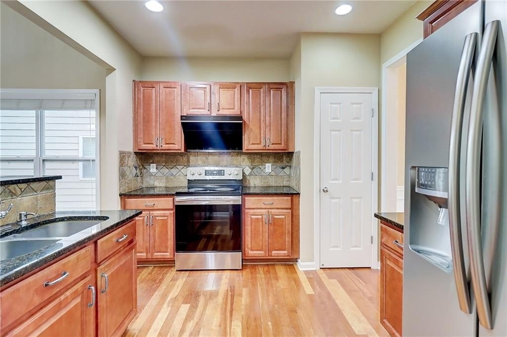 The gourmet kitchen is outfitted with granite countertops and opens to a dramatic two-story family room, overlooked by a generous loft area. Hardwood floors flow throughout the main living spaces, adding warmth and elegance.