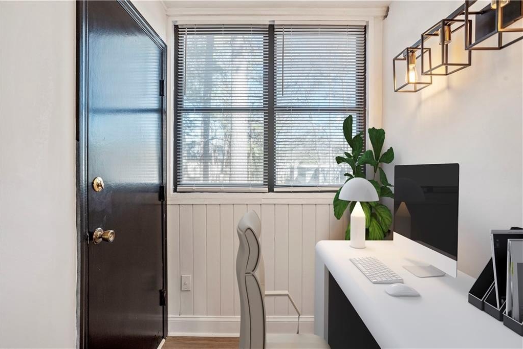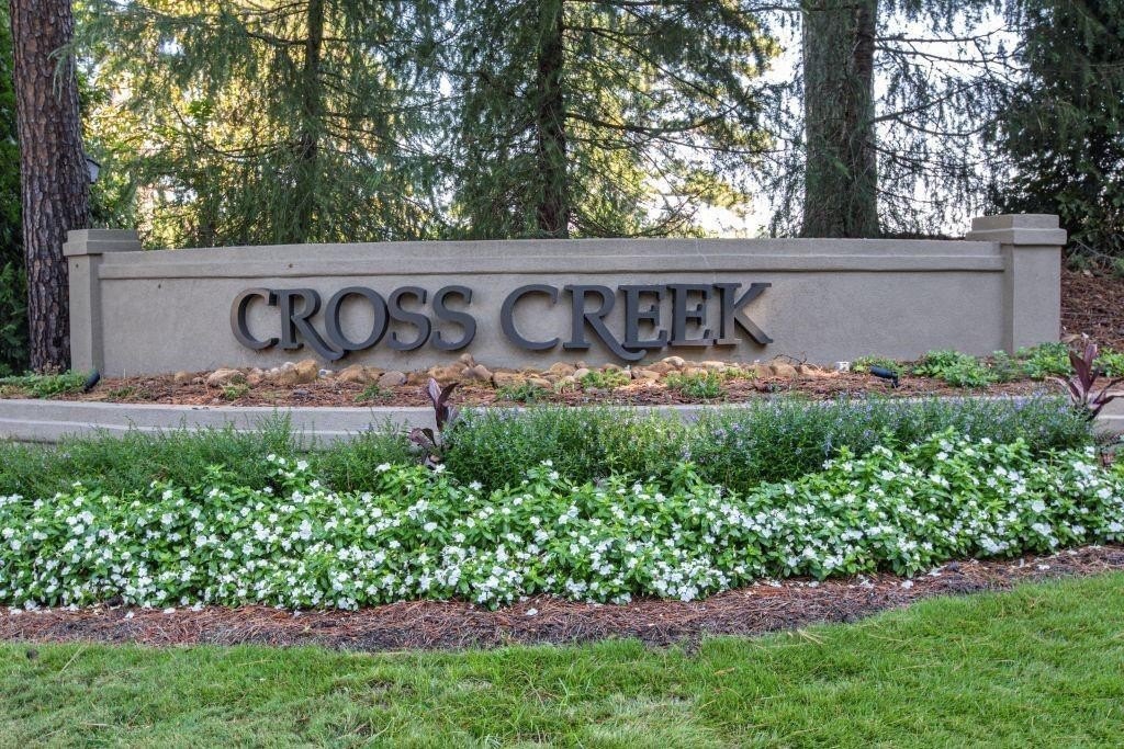 Welcome to this expansive one-level home featuring an open-concept layout. This walk up/ground level home highlights an inviting entrance foyer, a generous living room with a cozy fireplace and built in shelves, a large dining area, a 3rd bedroom or bonus AND a separate office. The roommate-style floor plan offers privacy, with a primary suite that includes a luxurious bath with a walk-in shower. Renovated unit with upgraded paint throughout. New water heater, upgraded HVAC and stainless appliances and washer/dryer. Ideally situated near the front gate in one of the most desirable sections of Cross Creek, this unit provides both comfort and convenience.