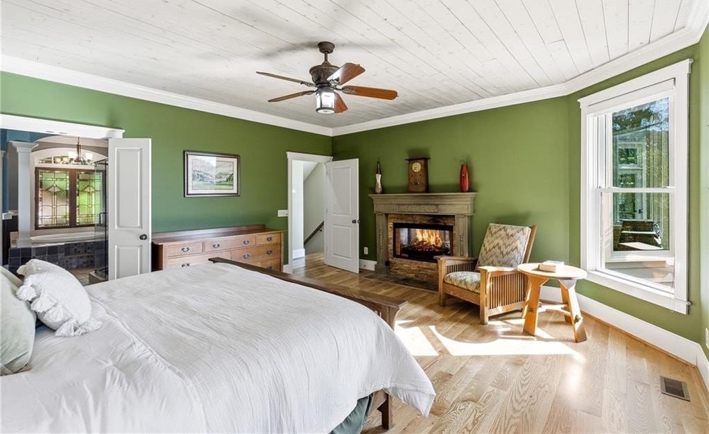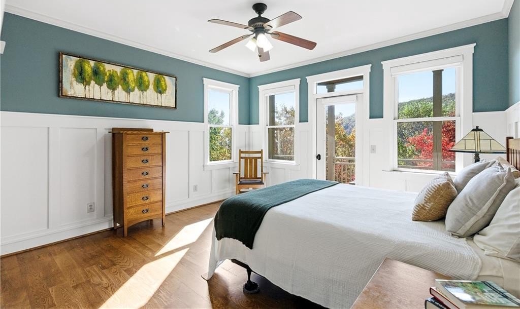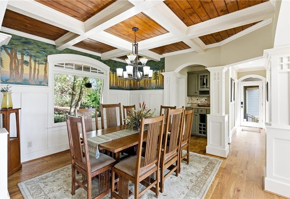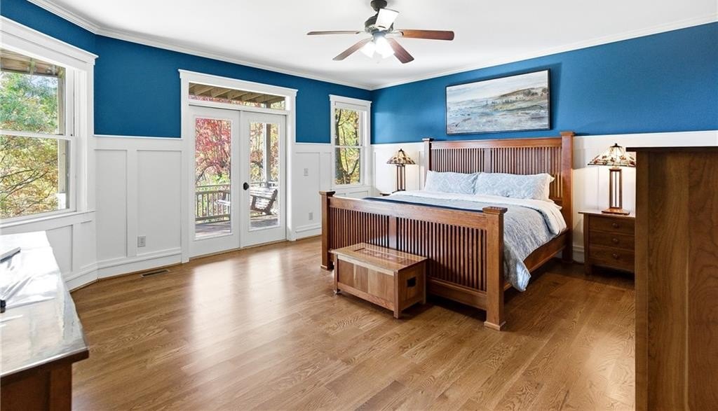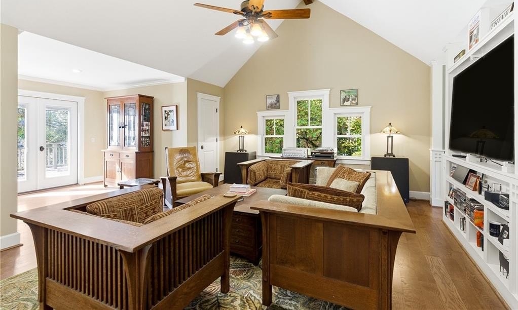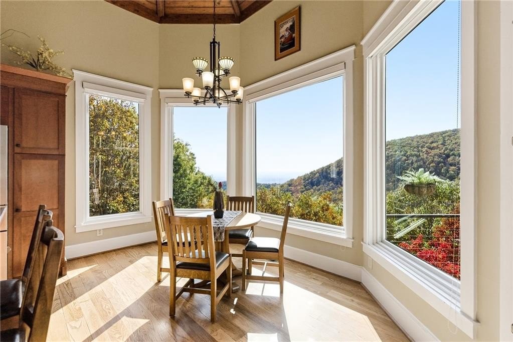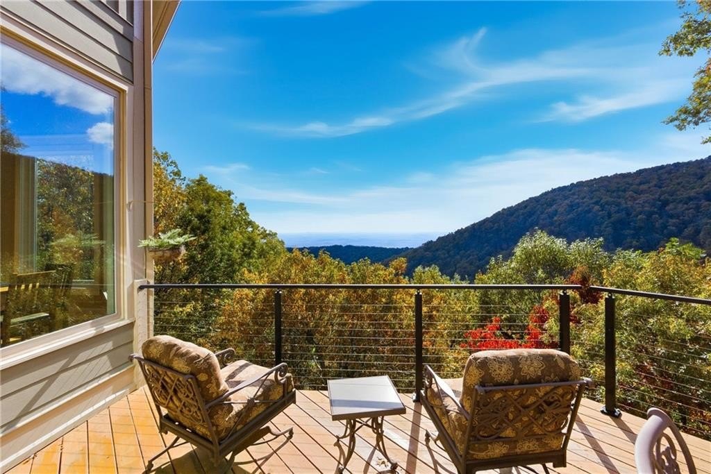 This stunning mountain retreat combines timeless craftsman design with sweeping western-facing views and resort-style amenities. Offering over 5,000 sq ft of living space, this expansive home includes 5 bedrooms, 4 full baths, 2 half baths, and a separate guest apartment above the garage—perfect for guests, multi-generational living, or a private home office. Located in Big Canoe’s sought-after lake and golf community, the home showcases breathtaking long-range and sunset views from nearly every room. The main level features a welcoming foyer, a vaulted great room with floor-to-ceiling windows, stone fireplace, and beamed ceilings, along with a gourmet kitchen featuring granite counters, stainless appliances, tile backsplash, bar seating, and a breakfast nook surrounded by panoramic mountain scenery. A formal dining room with coffered ceilings and custom millwork offers an elegant space for entertaining.The primary suite on the main level includes a double-sided fireplace from the great room, private deck access, jetted tub, walk-in shower, dual vanities, and a large walk-in closet. Upstairs you’ll find an additional bedroom with ensuite bath and private sitting area, while the terrace level offers three bedrooms and two full bathrooms, with beautiful hardwood floors. The sub-terrace level is spacious with wet bar, living room featuring gas fireplace, and a half bath. Multiple outdoor living spaces—including a screened porch, open deck, and lower terrace—invite you to relax and take in the mountain vistas. Community amenities include hiking trails, tennis, pickleball, championship golf courses, and lake access with beach area, fishing, and boating. Experience the best of luxury mountain living in Big Canoe—where thoughtful craftsmanship, layered mountain views, and resort-style amenities come together beautifully at 1043 Deer Run Ridge.