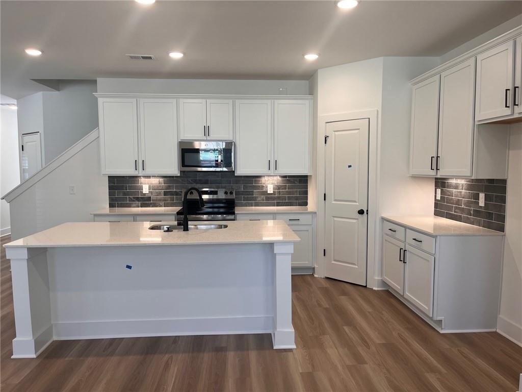 4.99% Permanent Buy Down FHA/VA Offering $20,000 for a rate buydown or closing costs (with the use of seller's preferred lender) on this beautiful 4 sides brick 2 story townhome. Photos are representative of subject property. Same floor plan and elevation. End Unit! Belle Elevation D. Ready to Move in. Investors welcome. Welcome to Governor's Park, Kennesaw's newest town home community. 2022 square feet of living space conveniently located near downtown Kennesaw. Majestic 4 sides brick, 9' ceilings on both 1st and 2nd floor. Kitchen will feature quartz countertops with tile backsplash. 42" upper cabinets w under cabinet lighting. Stainless steel appliances include an electric range, microwave, dishwasher and garbage disposal. Walk in pantry and island complete the kitchen. Open living space gives you complete flexibility for family room and dining area. Electric fireplace in family room included. Home backs to a common courtyard. Great area for relaxing or enjoying a game of cornhole.