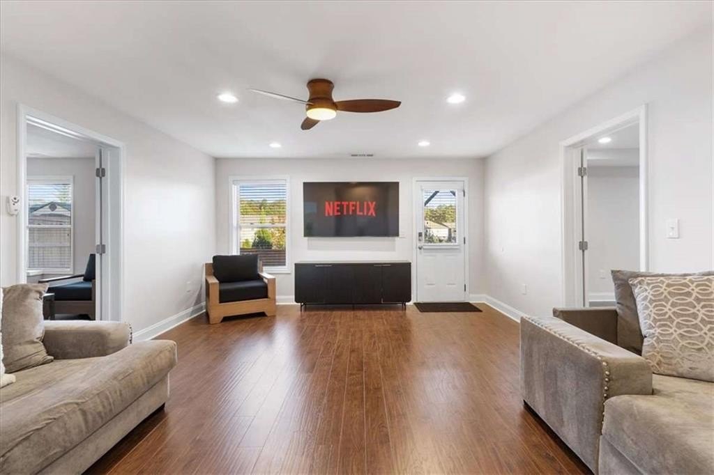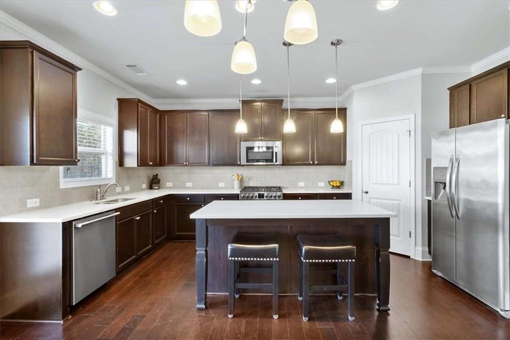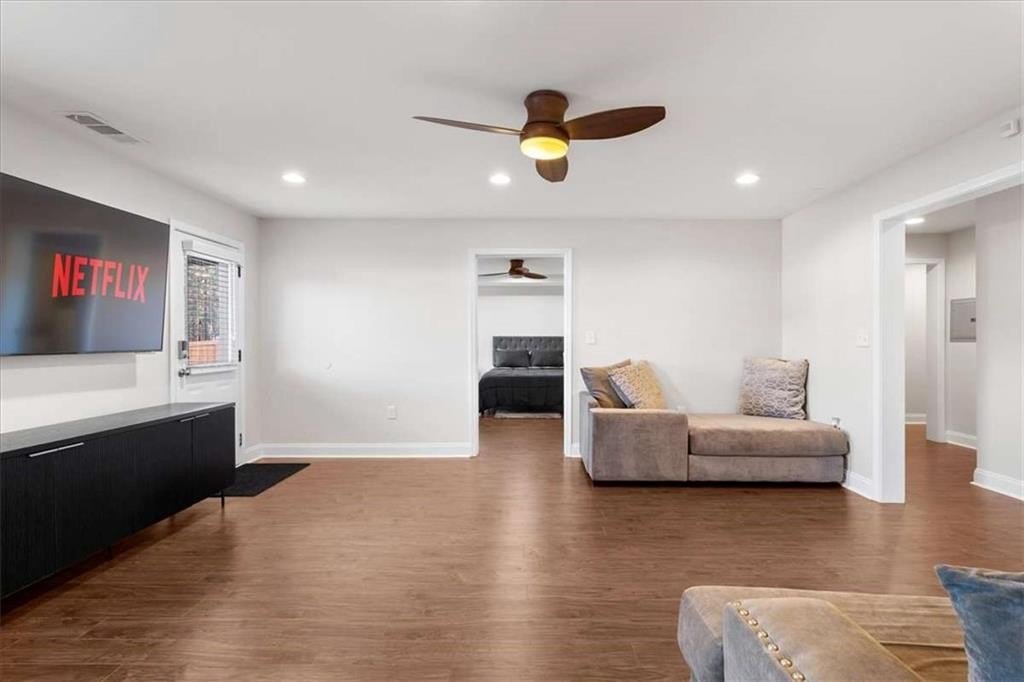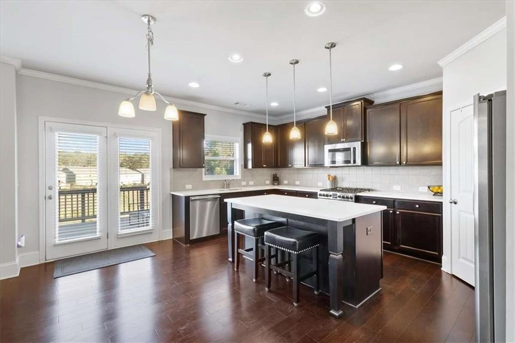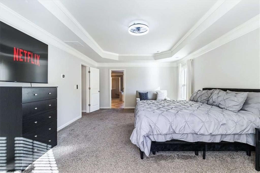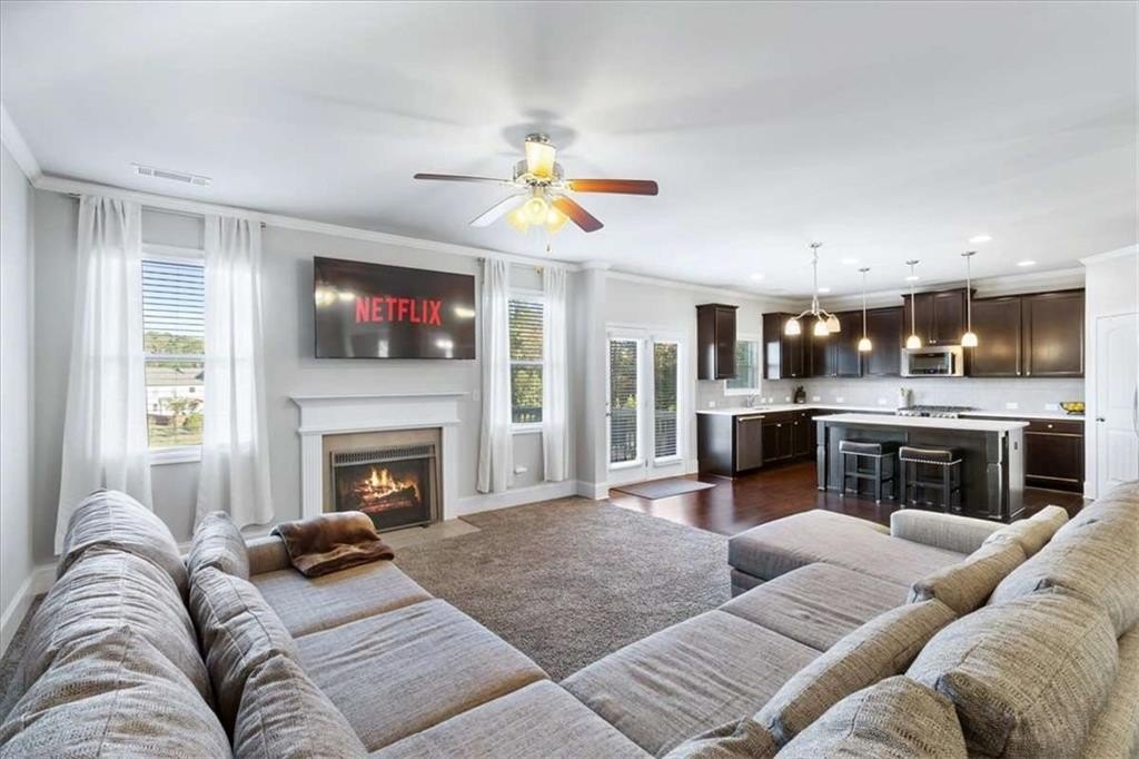 Welcome to your dream home in beautiful South Fulton, GA! This like-new 7-bedroom, 3.5-bath residence offers the perfect blend of comfort, luxury, and functionality-ideal for a growing or multi-generational family. The open-concept floor plan features elegant coffered ceilings, a cozy fireplace, and an oversized kitchen island with stunning quartz countertops and luxury Frigidaire appliances. The spacious owner's suite provides a relaxing retreat, while the fully finished basement is perfect for an in-law suite or guest quarters, complete with a kitchenette, washer/dryer hookups, and thoughtful wheelchair-accessible features including widened doorways and an accessible bathroom with a tub designed for those with mobility needs. Additional washer/dryer hookups are conveniently located on the main level. Enjoy outdoor living in the fully fenced backyard with a peach tree, ideal for family gatherings or quiet evenings. Nestled on a peaceful street in a quaint community, this home offers privacy and charm while still being close to all that South Fulton has to offer. To make this opportunity even more incredible, this home qualifies for 100% financing with our preferred lender, making your dream of homeownership more attainable than ever. Don't miss your chance to own this versatile, move-in ready home that truly has it all!