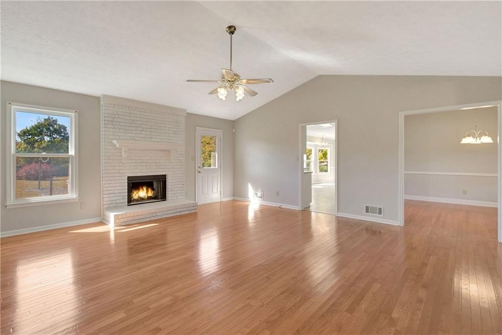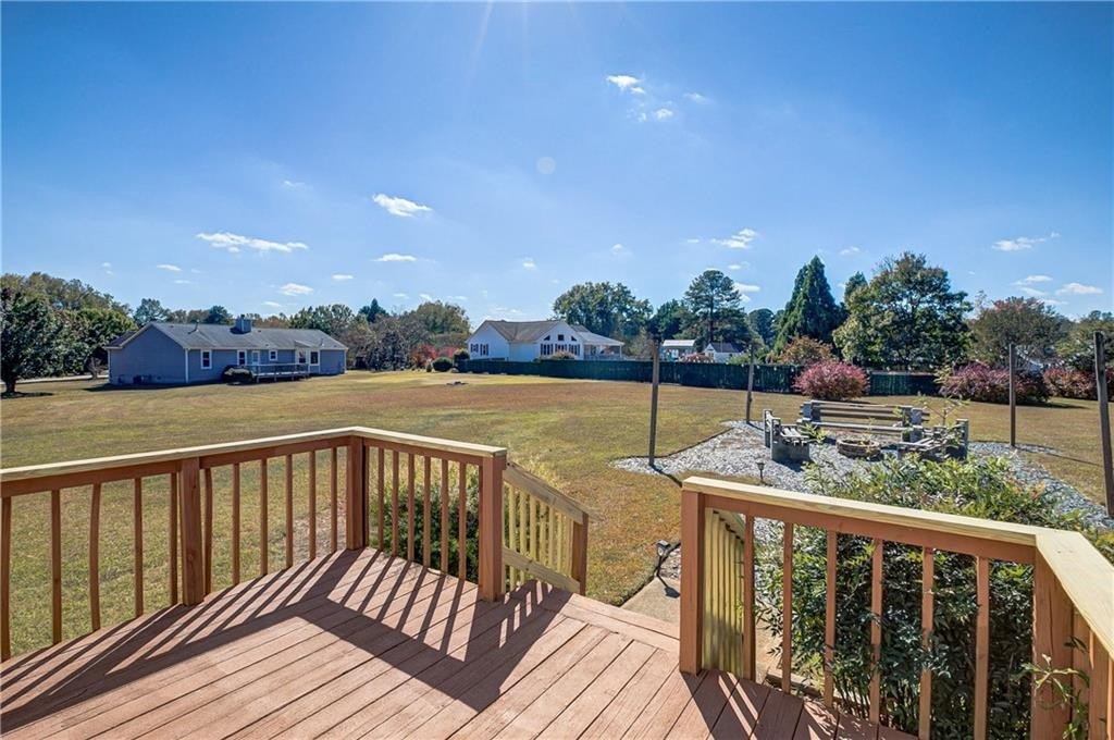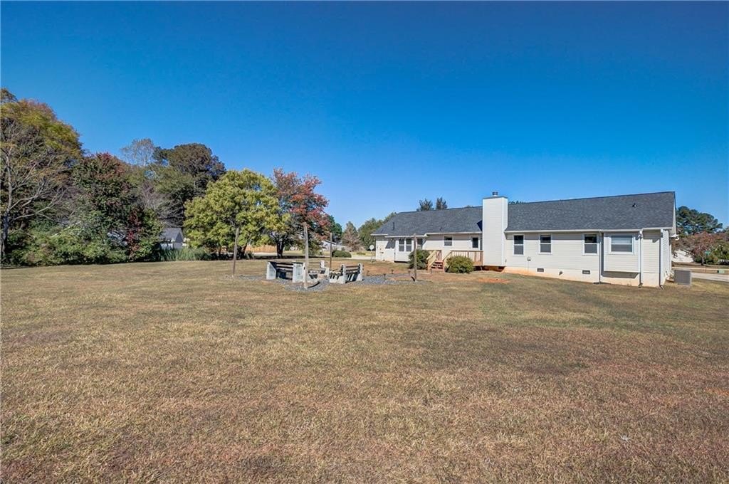 Nestled in an established neighborhood, this well-maintained home offers peaceful living on a spacious and private lot. The large country kitchen features plenty of cabinetry, granite countertops, a tile backsplash, stainless steel sink, and a walk-in laundry room. This home has new paint, flooring, and new bathroom vanities throughout, making it the perfect move-in ready home for the perfect buyer! Enjoy your morning coffee in the bright breakfast nook with a bay window overlooking the spacious, inviting backyard. The separate dining room and welcoming foyer open to an oversized family room with stunning new hardwood floors and a freshly painted brick fireplace with gas starter. The spacious primary suite includes a walk-in closet, garden tub, and separate shower. Both bathrooms feature freshly painted wooden cabinets, new tile flooring, and new vanities. Step outside onto the deck to your own private retreat featuring a spacious backyard with a cozy firepit area—perfect for relaxing evenings or entertaining guests. The custom-built seating and string lighting create an inviting atmosphere for gatherings under the stars, all set on a beautifully landscaped one-acre lot offering plenty of open space and privacy. Book your showing today! Please use the following link to submit all offers. https://app.homeward.com/agents/listings/a2ZPd000001YihBMAS/submit-an-offer/