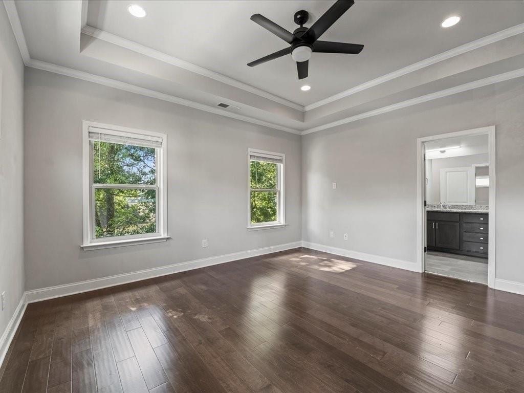 Welcome to your beautifully upgraded townhome, ideally located near entertainment, shopping, dining, Emory University, the CDC, Dekalb Medical, Marta, and Downtown plus a new Publix just around the corner! Step inside to find stunning hardwood floors throughout and a chef’s kitchen designed to impress, complete with stylish pendant lighting. The open main level features soaring 10-foot ceilings and large windows that flood the space with natural light, creating a warm and inviting atmosphere. As an end unit, this townhome offers a spacious dining and kitchen area that seamlessly flows into the family room, which leads out to a full rear deck surrounded by lush trees—perfect for relaxing or entertaining. With three levels of thoughtfully designed living space, you'll enjoy a generously sized suite on the Terrace level, along with a convenient 2-car garage that includes ample dedicated storage. Located in a small, gated community built by Water's Edge Group in 2019, this townhome truly has it all! Don’t miss your chance to experience comfortable living in this vibrant and well-connected neighborhood.