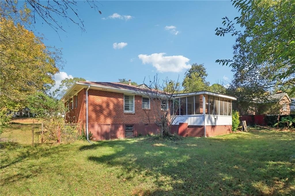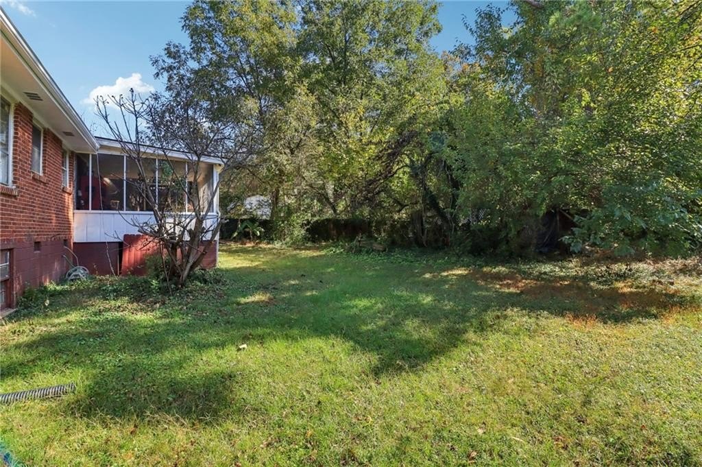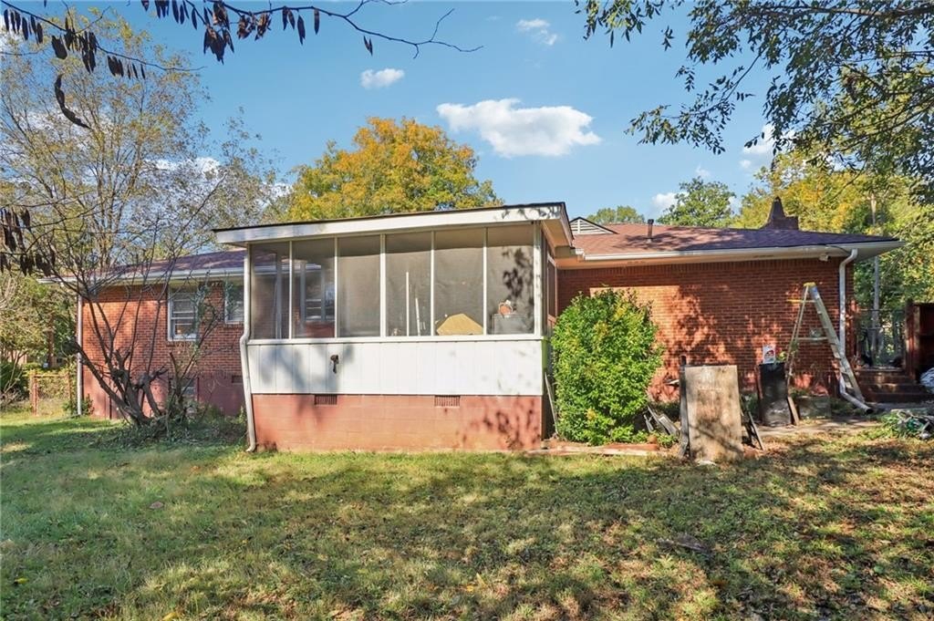 Charming ranch home on a spacious corner lot! Step inside to a bright front flex room with wood floors and abundant natural light — perfect for a sitting area or home office. The generous living room features a striking floor-to-ceiling brick fireplace for cozy evenings. The kitchen offers an island with electric range, granite countertops, tile backsplash, and plenty of cabinet and prep space, and opens to a large dining room with easy access to the screened porch. Retreat to the primary suite with an updated bath showcasing a vessel bowl sink and tiled tub/shower. Two additional spacious bedrooms share a beautifully updated full bath. A convenient laundry room completes the interior. Enjoy bug-free outdoor living on the screened-in patio overlooking a huge yard with abundant green space. Located just across the street from the community pool for ultimate convenience! Book your tour today!