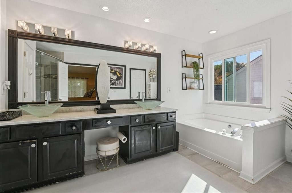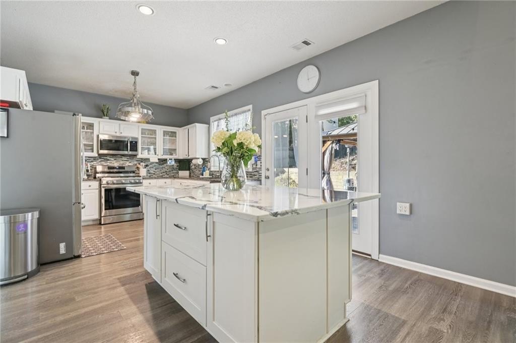 Beautifully updated 3BR/2.5BA home in desirable Norcross! Welcoming formal living and dining rooms lead to an updated kitchen with granite counters, new island, and recently replaced appliances, overlooking a stunning 2-story fireside family room. Upstairs features a spacious primary suite with vaulted ceiling, walk-in closet, and ensuite bath with soaking tub and tiled shower. Two secondary bedrooms, updated hall bath with double vanity, and laundry room complete the level. Enjoy the backyard oasis with a stamped concrete patio and gazebo. Major updates include new roof (2020), new furnace (2024), new windows (2024), and first-level flooring (2020). Move-in ready and close to shopping, dining, and major highways!