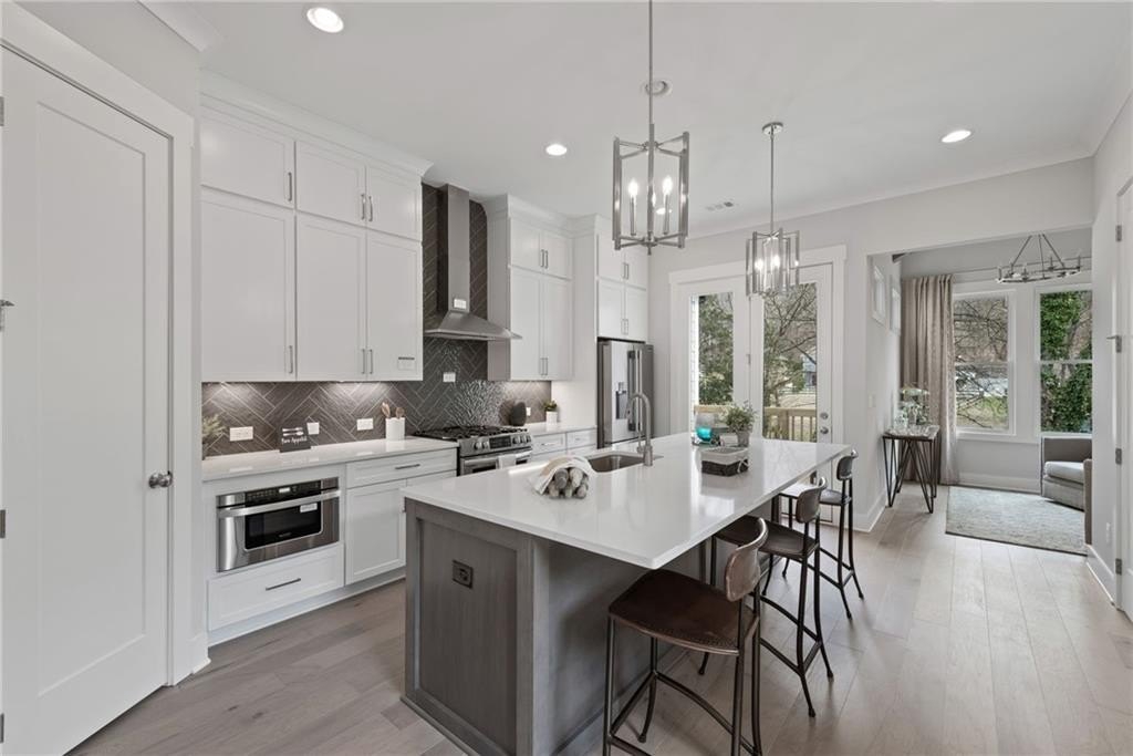 This Kingsley plan features 3 levels of luxurious finishes in this gated community. This bright open floor plan is great for entertaining your guests. These beautiful townhomes are thoughtfully designed and include 10' ceilings, luxury LVP throughout, the Chef’s kitchen includes a large island, floor to ceiling custom cabinetry with soft close, double trash pull outs, quartz countertops, tile backsplash and stainless-steel appliances. The Great room includes a fireplace with gas logs and built-ins on each side as well as a covered balcony. The cozy nook/office off of the kitchen. Large Owner's suite with walk-in closet, spa inspired Owner’s bath with floor to ceiling tiled shower, tiled flooring, his and her vanities, and frameless shower door. Spacious upstairs secondary bedroom with ensuite. Finished terrace level with drop zone, bedroom and full bathroom. Award-winning Architecture. Just a short walk to shops and dining in downtown Kennesaw. Don’t Miss Out on this beautiful luxury townhome from the JW Collection, founded by John Wieland who has been building new homes and neighborhoods with quality and integrity for over 50 years. Quality Building at its BEST! Limited Time Incentive up to $30,000 any way you want it! This home is currently under construction with an estimated completion date of end of February -March.