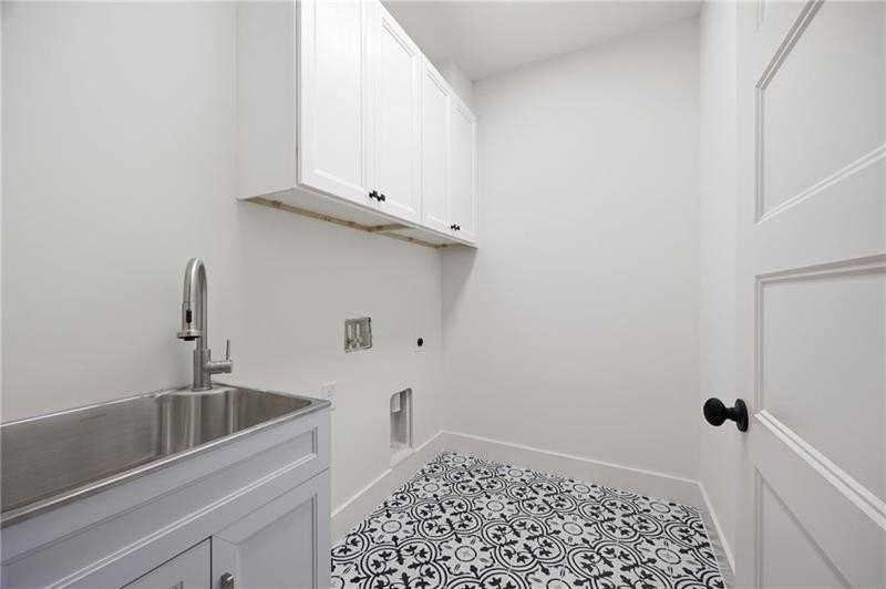 Even daily routines feel indulgent thanks to a well-appointed laundry room featuring a stainless sink and designer accent tile. Outdoors, relax under the covered porch, perfectly positioned to take in the tranquil landscape. The sodded front and back yards offer instant curb appeal, while the side-entry garage includes an epoxy-coated floor for a polished finish.