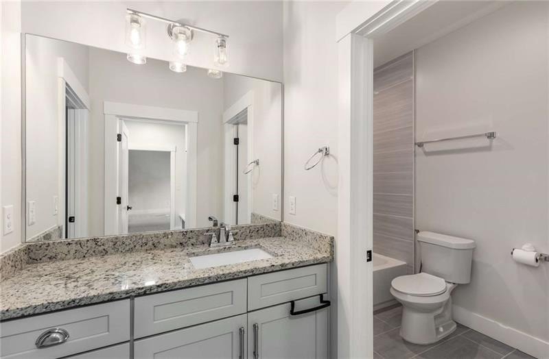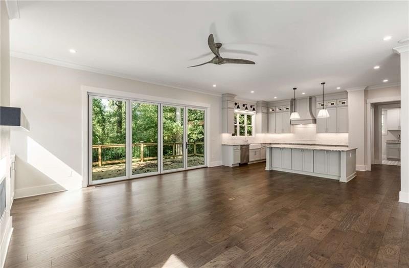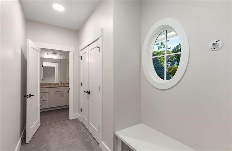 Welcome to your Wildwood haven, a 2022 custom build tucked in the heart of Buckhead on a quiet cul-de-sac in one of the neighborhood's most beloved spots where neighbors wave and kids still play outside until the sun sets. The exterior charms with warm cedar accents, glowing Bevolo gas lanterns, a slate-gray metal roofline, elegant oval windows, and classic Bradford Hall Tudor brick. Inside, an airy foyer opens to a spacious living room with treetop views of the Buckhead forest, a sleek linear fireplace, and a 14-foot panoramic glass door that extends the living space to a stained and sealed deck lit for cozy evenings outdoors. The chef's kitchen features polished Brazilian marble counters, premium KitchenAid and Bosch appliances, a farmhouse sink, walk-in pantry, and custom mudroom nearby. A main-level guest suite with a marble bath offers privacy and comfort for visitors. Upstairs, four bedrooms include a Jack-and-Jill bath and a serene owner's retreat with dual closets, spa-like marble bath, dual shower heads, and a freestanding soaking tub. Smart home tech, an EV-ready garage, tankless water heater, two-zone HVAC, premium insulation, and thoughtful storage throughout make life as efficient as it is beautiful, move-in ready and perfectly Wildwood.