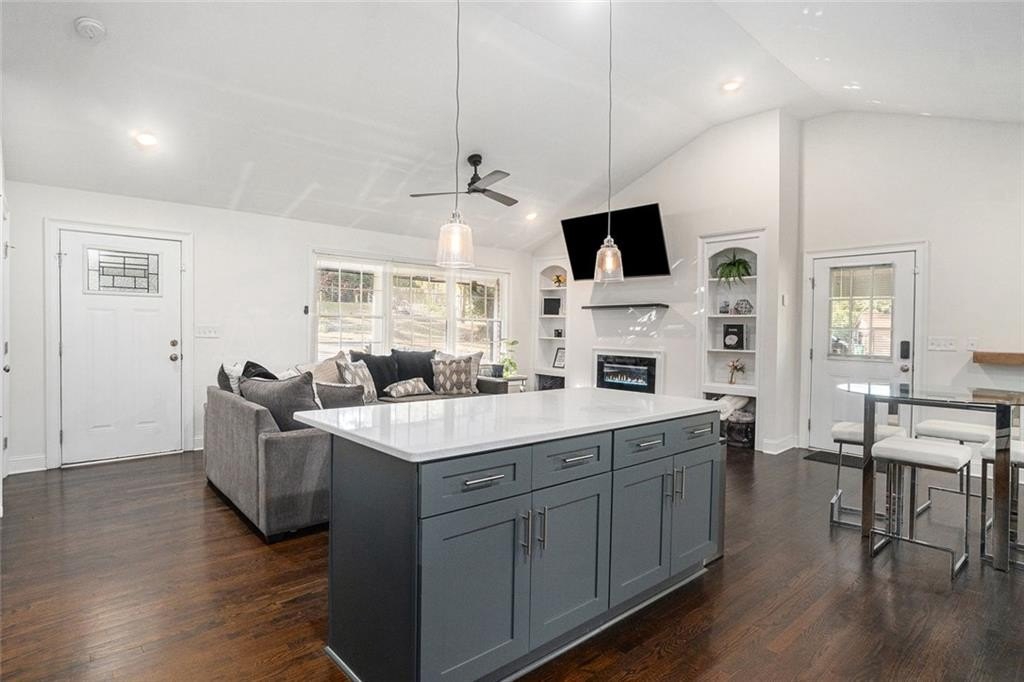 This renovated split-level home has 4 unique levels of living. The main level features an open concept, LR/DR/Kitchen combo w/vaulted ceilings, electric FP insert flanked by built-ins. SS appliances, a large island, quartz tops & pantry closet are standout kitchen features. Easy access to the upper deck, car port or front porch to extend the living space on this floor. The upper level has 2 good sized BDRs w/vaulted ceilings. A smaller guest room makes an ideal office or flex space. One ensuite and one shared bath, both renovated by previous owner. One level down from the main, you'll find the laundry room, another full bath, & room for another primary bedroom w/sitting area. Access a lower level deck adds outdoor living space for this level. Descend one more level to another large room with full bath, masonry fireplace and access to the backyard and designated firepit area. This home has storage galore! The separate access points for almost every level, make this an ideal layout for having roommates or sharing w/ extended family. Renovated & ready to move in. This home is truly special. Come check it out.