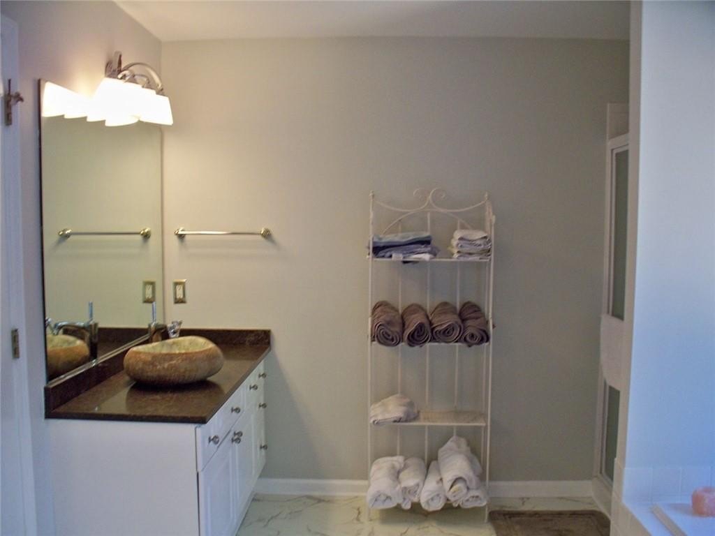 Upstairs, the primary suite feels like a getaway, featuring a tray ceiling, generous sitting area, and spa-style bath to include double vanities with unique, above counter stone sinks and high end faucets, a relaxing soaking tub, shower and water closet. Three additional bedrooms and a full bath provide plenty of space for family or guests.