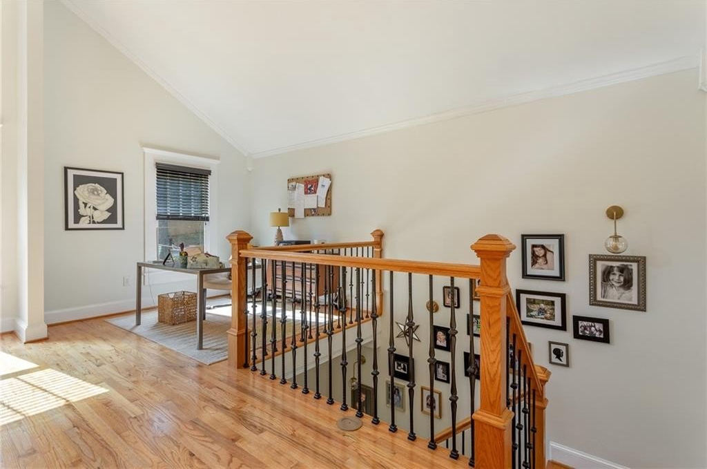 Upstairs, an expansive family room has its own fireplace, complete with a cozy nook ideal for office space. The upstairs also includes a larger bedroom with a newly renovated ensuite bathroom and two additional bedrooms that share an updated hall bath with a shower/tub combination — offering plenty of space for family or guests.