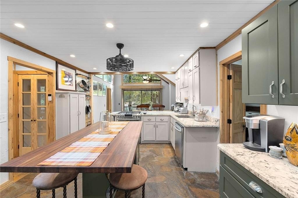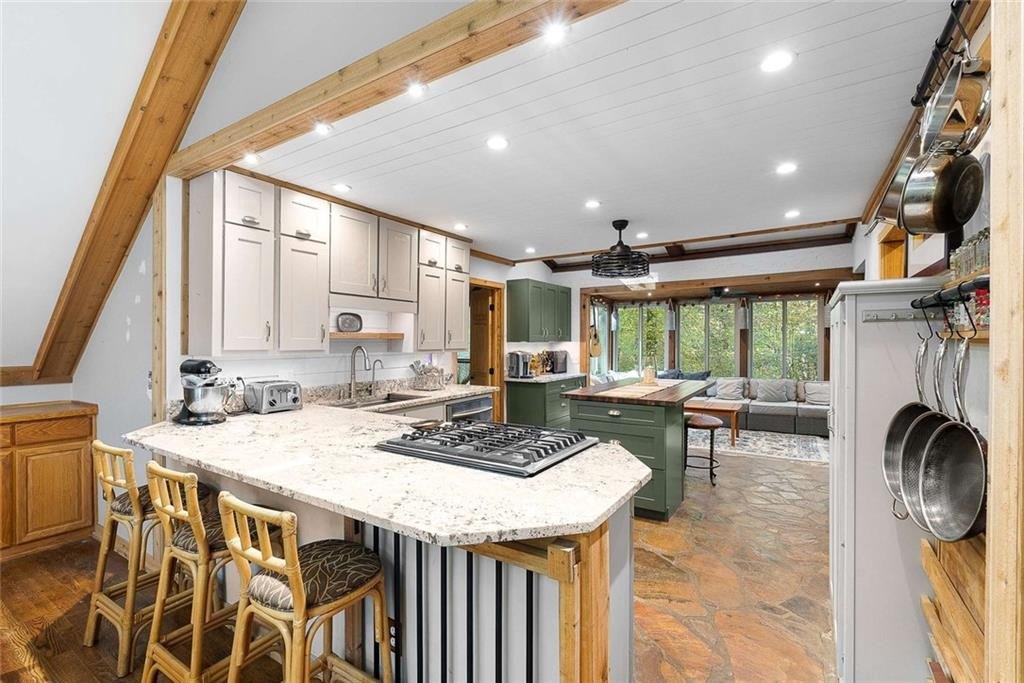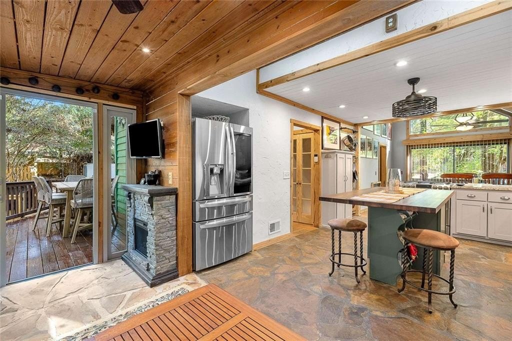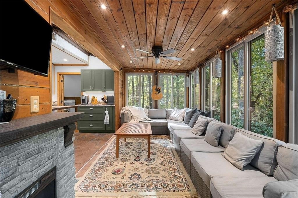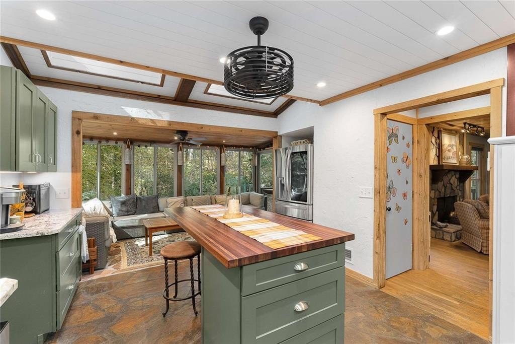 Step through the DECORATIVE GLASS FRONT DOORS and into a home that blends creativity and craftsmanship. The OPEN CONCEPT KITCHEN, remodeled in 2023, connects seamlessly to the living and dining spaces—perfect for everyday living or entertaining. The FOUR-SEASON SUNROOM brings the outdoors in, offering year-round views of the LANDSCAPED BACKYARD that opens to GREENSPACE AND CREEK VIEWS. Outside, the NEW BACK DECK (2025) overlooks a sparkling HEATED IN-GROUND POOL, while the METAL ROOF adds modern appeal and lasting durability.