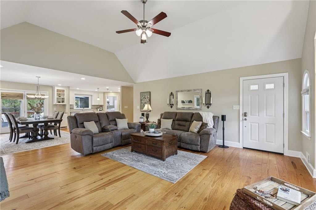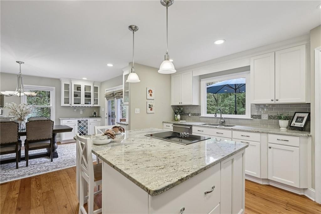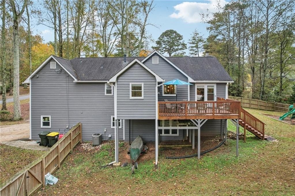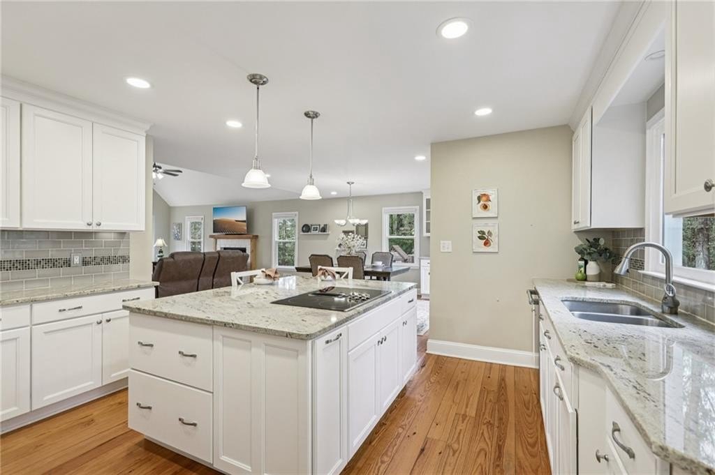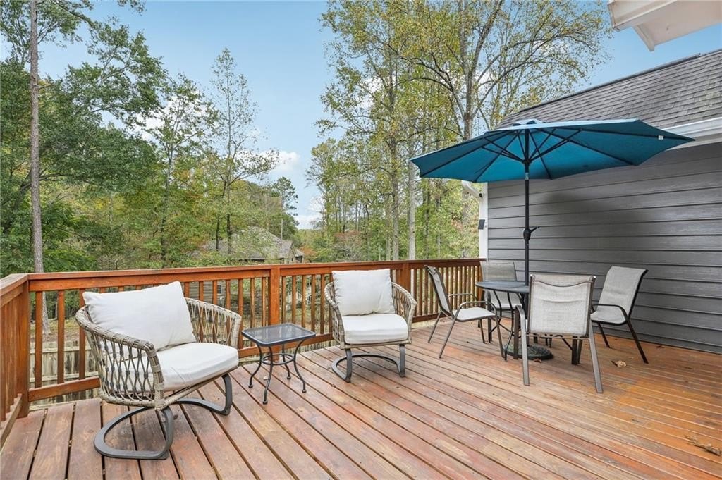 Tucked away in a quiet cul-de-sac in sought-after Woodstock, this beautifully updated home combines modern renovations with timeless comfort. The main living area was opened up to create a true open-concept layout that seamlessly connects the remodeled kitchen, dining, and living spaces—perfect for entertaining or relaxing at home. The kitchen remodel added upgraded cabinetry, stone countertops, and a convenient laundry room and walk-in pantry. The expanded primary suite feels like a private retreat with dual vanities, an oversized tile shower, and a soaking tub. Both secondary bedrooms are generously sized, and the guest bath has been updated with modern finishes. The partially finished basement offers a flexible space ideal for a home office, gym, or game room. Outdoor living shines with a large private yard, five-foot privacy fence, rebuilt front porch and back deck, and freshly painted exterior. This home has been lovingly maintained and improved over the years, featuring a Rheem 50-gallon gas water heater, whole-house water filtration and softener system, Lennox HVAC with touchscreen thermostat, new windows and gutter guards, new front and garage doors, and new carpet in the bedrooms. The oversized garage provides extra storage or potential for a future in-law suite conversion. Enjoy peace and privacy with easy access to Downtown Woodstock, I-575, shopping, and restaurants—all within highly rated Cherokee County schools. Move-in ready, energy-efficient, and beautifully updated, this Woodstock home offers the perfect blend of comfort, convenience, and style. Note: Square footage may vary from public records due to permitted additions and recent updates. Buyers are encouraged to verify all measurements.