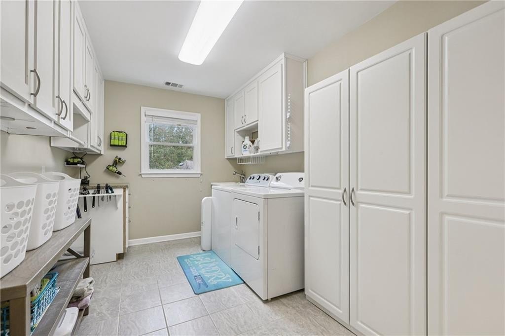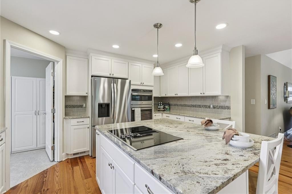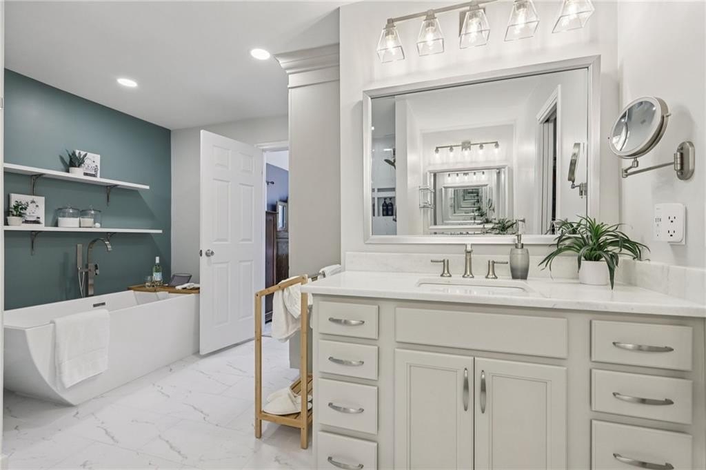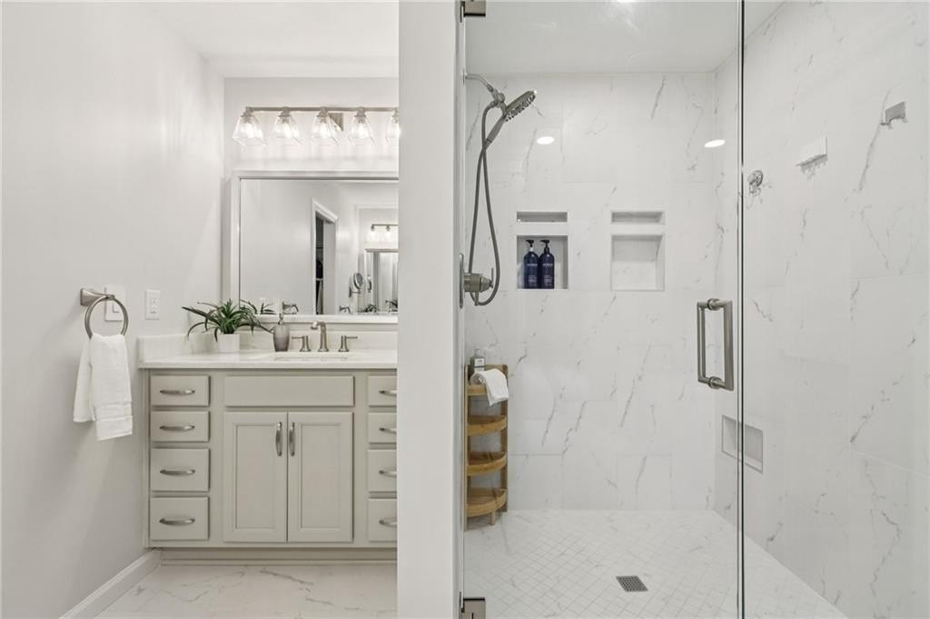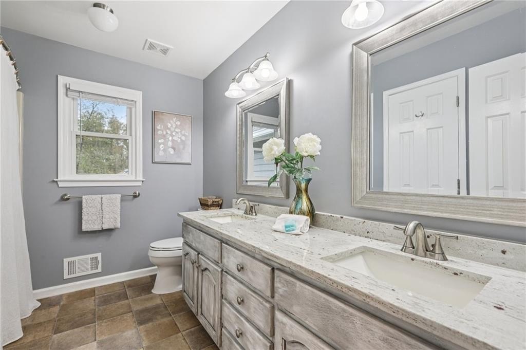 Tucked away in a quiet cul-de-sac in sought-after Woodstock, this beautifully updated home combines modern renovations with timeless comfort. The main living area was opened up to create a true open-concept layout that seamlessly connects the remodeled kitchen, dining, and living spaces—perfect for entertaining or relaxing at home. The kitchen remodel added upgraded cabinetry, stone countertops, and a convenient laundry room and walk-in pantry. The expanded primary suite feels like a private retreat with dual vanities, an oversized tile shower, and a soaking tub. Both secondary bedrooms are generously sized, and the guest bath has been updated with modern finishes. The partially finished basement offers a flexible space ideal for a home office, gym, or game room. Outdoor living shines with a large private yard, five-foot privacy fence, rebuilt front porch and back deck, and freshly painted exterior. This home has been lovingly maintained and improved over the years, featuring a Rheem 50-gallon gas water heater, whole-house water filtration and softener system, Lennox HVAC with touchscreen thermostat, new windows and gutter guards, new front and garage doors, and new carpet in the bedrooms. The oversized garage provides extra storage or potential for a future in-law suite conversion. Enjoy peace and privacy with easy access to Downtown Woodstock, I-575, shopping, and restaurants—all within highly rated Cherokee County schools. Move-in ready, energy-efficient, and beautifully updated, this Woodstock home offers the perfect blend of comfort, convenience, and style. Note: Square footage may vary from public records due to permitted additions and recent updates. Buyers are encouraged to verify all measurements.
