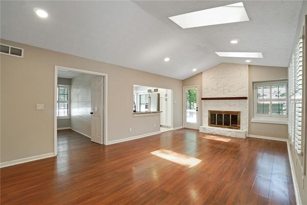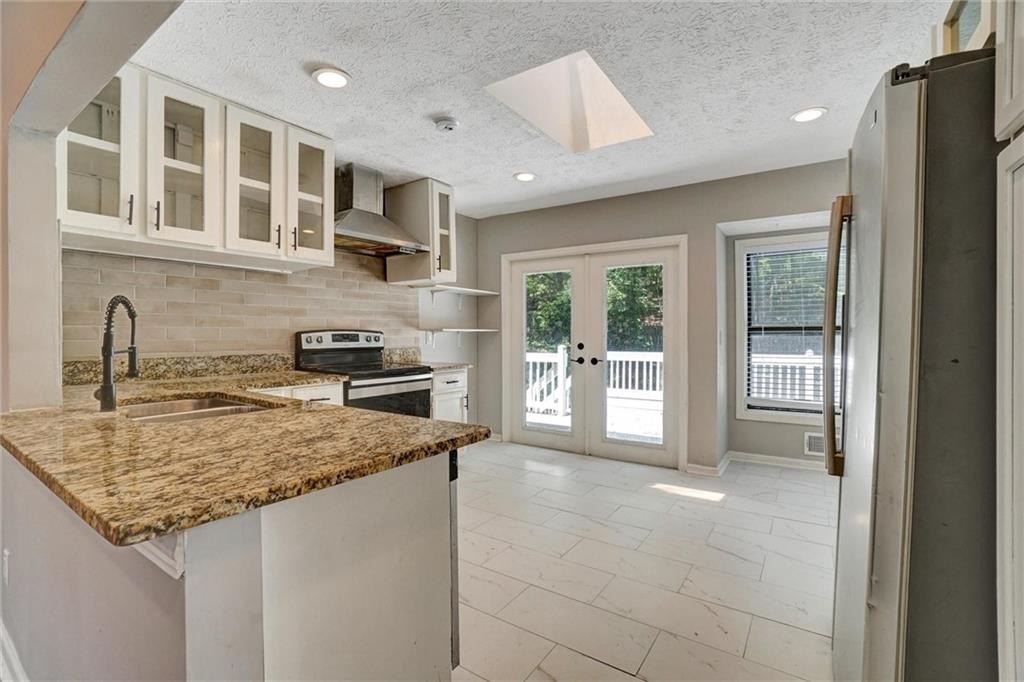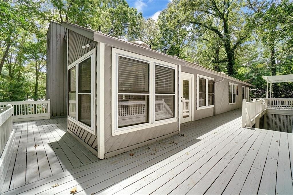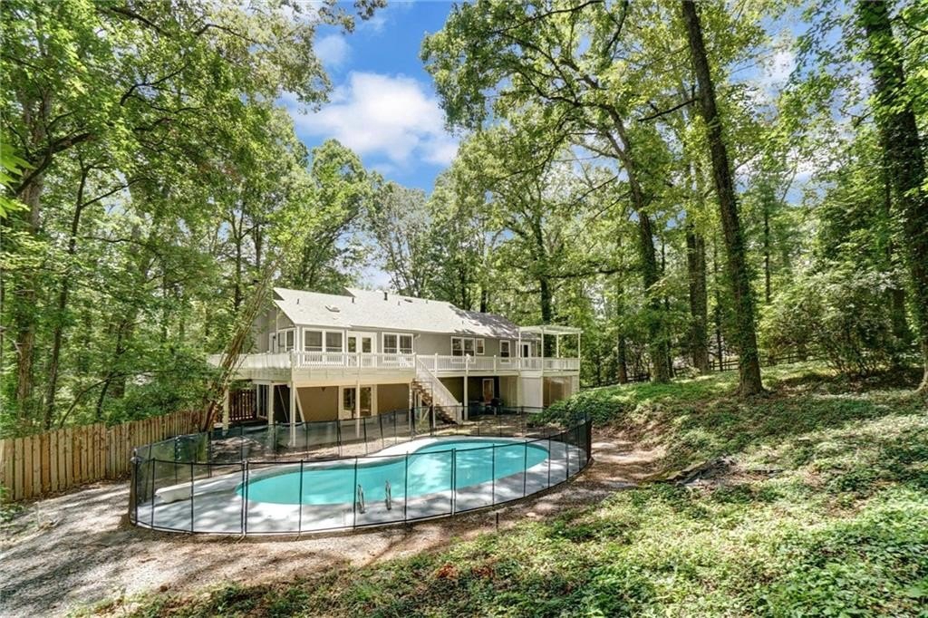 Nestled just 3 miles from downtown Roswell, this conveniently located property blends modern finishes with expansive, flexible living areas designed for everyday living and weekend gatherings. No HOA. Major renovation was completed in 2021. The living area is flooded with natural light from large windows and overhead skylights, creating a warm, airy atmosphere. Family room opens to the kitchen and offers clear sightlines to the backyard and pool. This listing offers five generously sized bedrooms, four full baths, and a large bonus room that can be convertible to a sixth bedroom, home office, or media lounge. Bonus room is complete with a separate kitchen and a full bath, suitable for in-law suite. Practical spaces are abundant— an expansive living room on each of the two levels, two laundry rooms with space for folding and storage, lower level has kitchenette, bonus room has second kitchen, outbuilding for storage, covered patio on lower level, wraparound deck on main level, and so much more. Outdoor space features a sparkling in-ground pool, with a private backyard, suitable for relaxation, everyday retreat and lively poolside entertaining. Schedule your private showing today to experience this expansive floor plan, private in-ground pool, in a desirable Roswell location!
