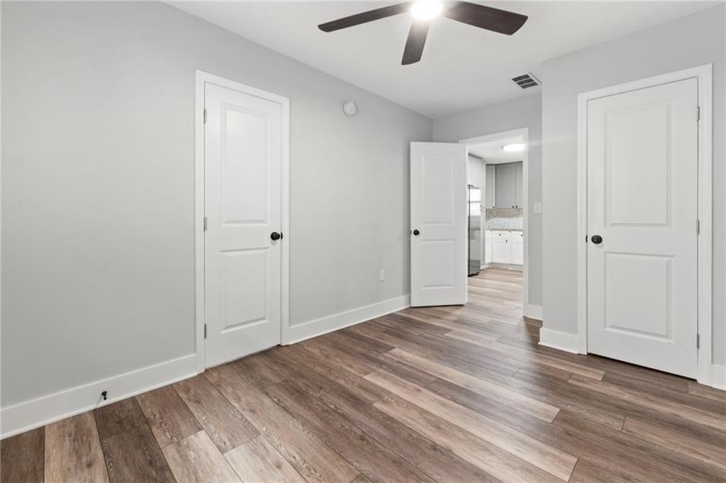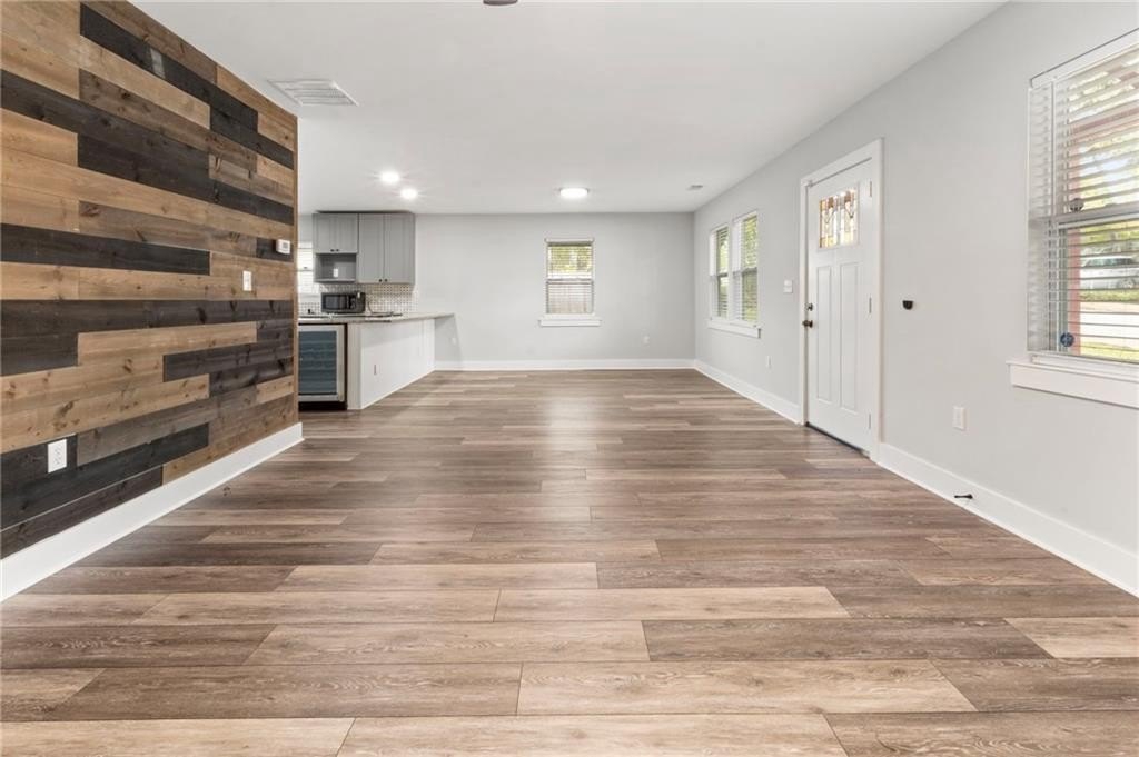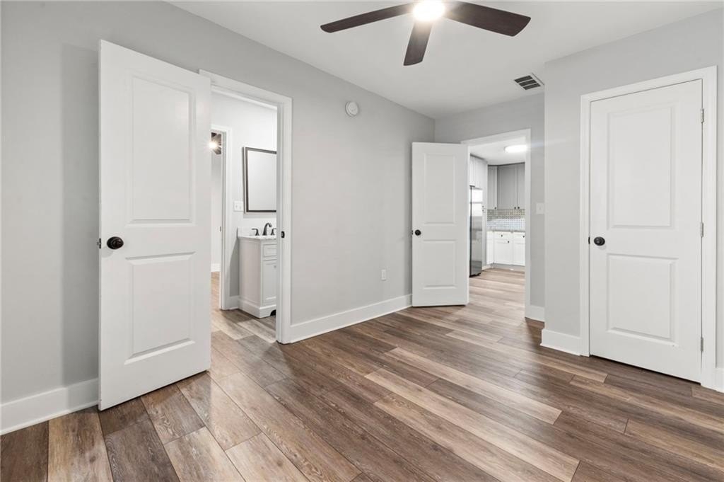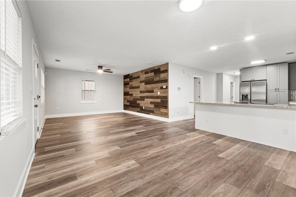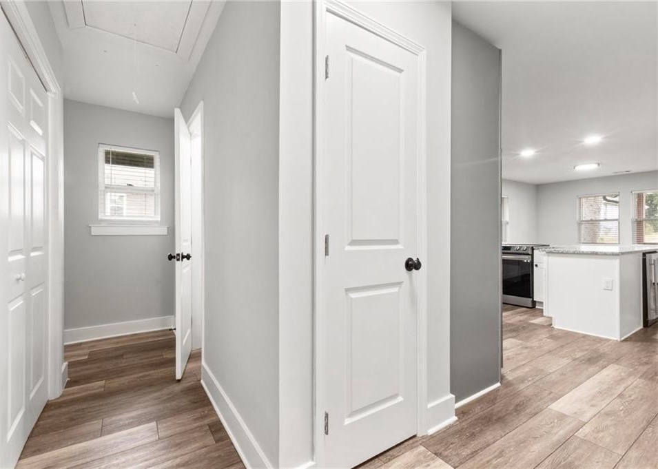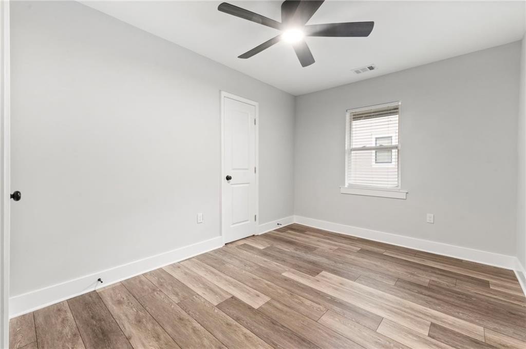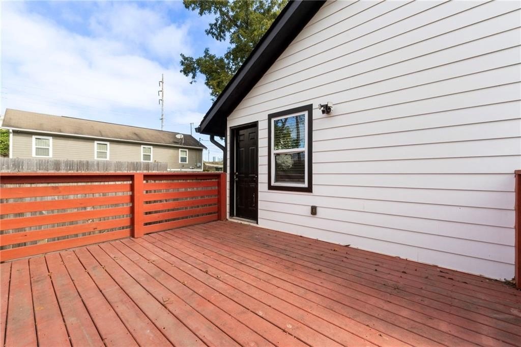 Renovated entirely in 2023, this bungalow graces Simmons St with style. Minutes from Georgia Tech, Westside Park, and Mercedes-Benz stadium. Just over half a mile to Bankhead Marta station. A private driveway accommodates two cars. The fenced back yard with deck affords privacy while the open front porch offers a view of the neighborhood. The interior renovation is modern, with high end finishes, including a shiplap feature wall in the living room, granite counter tops, gray cabinets, stainless steel appliances, custom tile backsplash, custom tile showers, and dual vanity in the primary bathroom. The three bedrooms are large enough for a king-sized bed with roomy closets. The spacious dining room seats ten. Electrical, plumbing, flooring, HVAC, and walls all new in the 2023 renovation—this home was rebuilt from the ground up. Unable to determine which Middle School services this address.