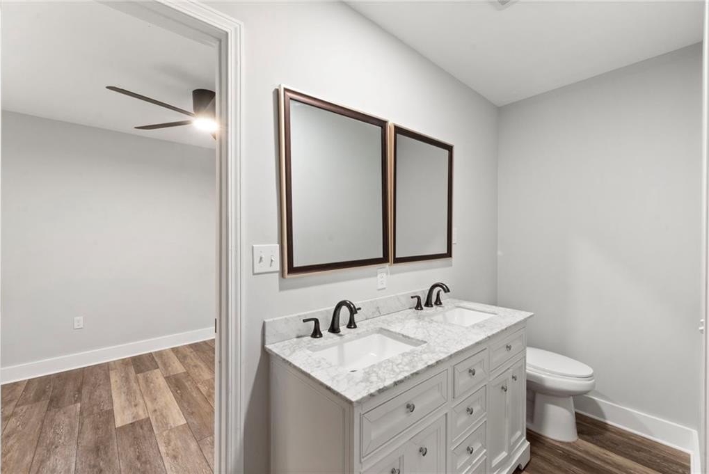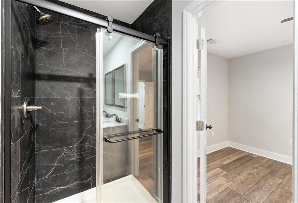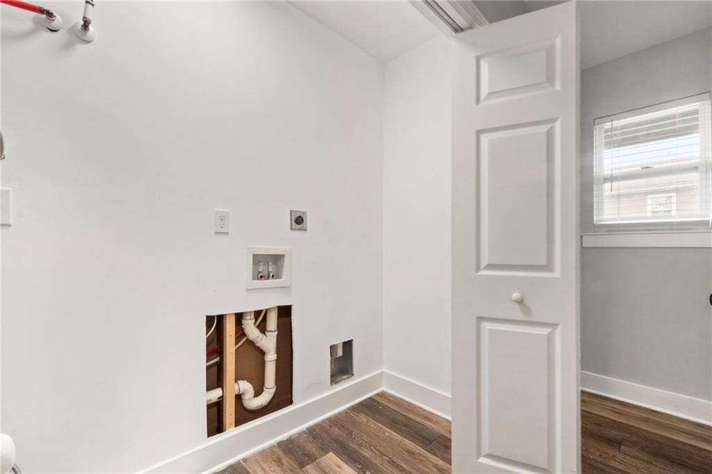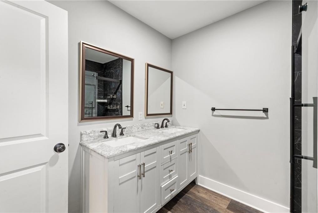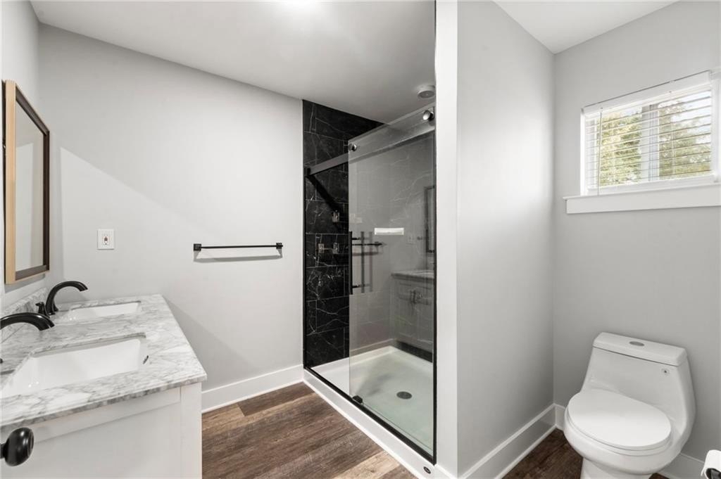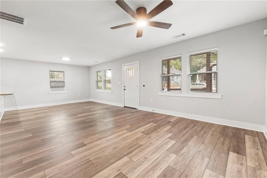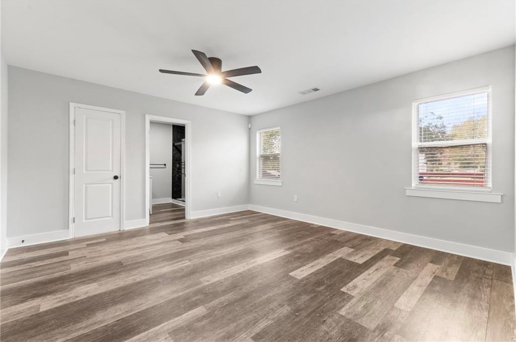 Renovated entirely in 2023, this bungalow graces Simmons St with style. Minutes from Georgia Tech, Westside Park, and Mercedes-Benz stadium. Just over half a mile to Bankhead Marta station. A private driveway accommodates two cars. The fenced back yard with deck affords privacy while the open front porch offers a view of the neighborhood. The interior renovation is modern, with high end finishes, including a shiplap feature wall in the living room, granite counter tops, gray cabinets, stainless steel appliances, custom tile backsplash, custom tile showers, and dual vanity in the primary bathroom. The three bedrooms are large enough for a king-sized bed with roomy closets. The spacious dining room seats ten. Electrical, plumbing, flooring, HVAC, and walls all new in the 2023 renovation—this home was rebuilt from the ground up. Unable to determine which Middle School services this address.