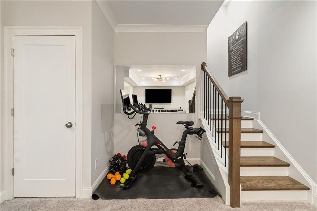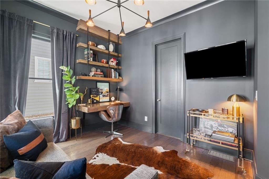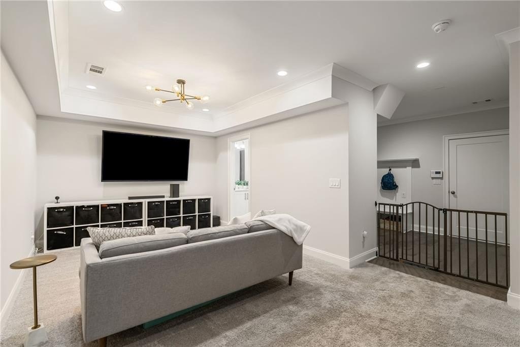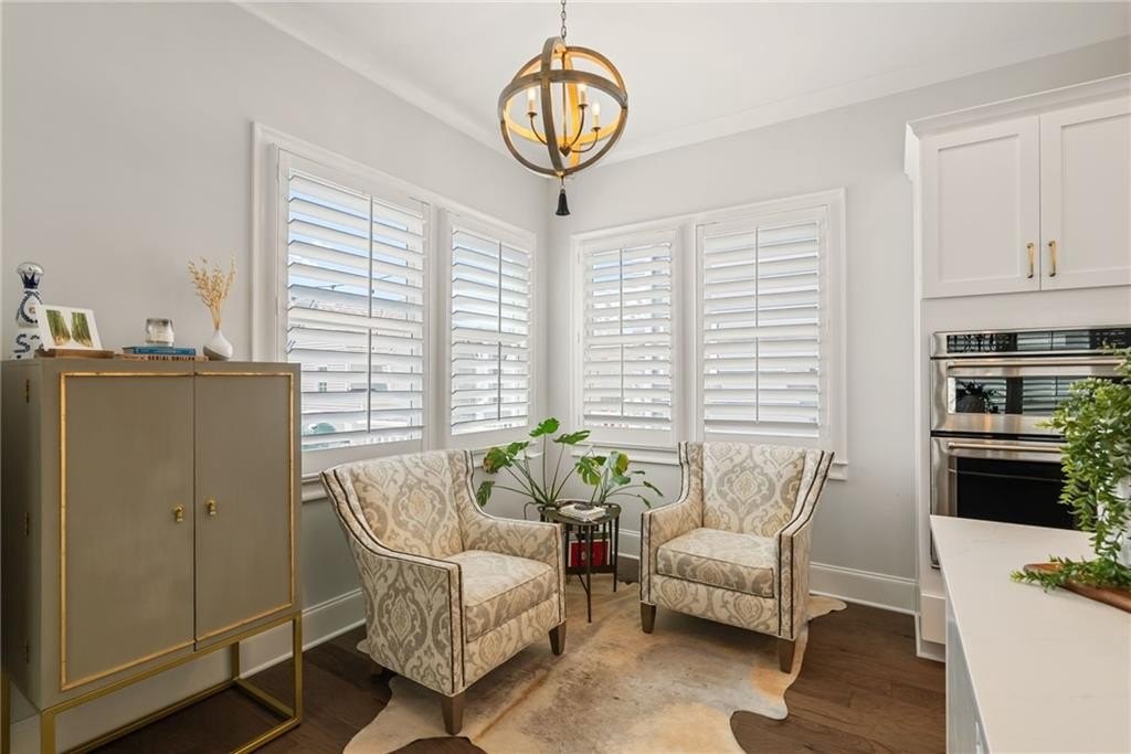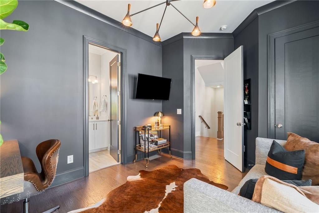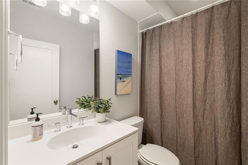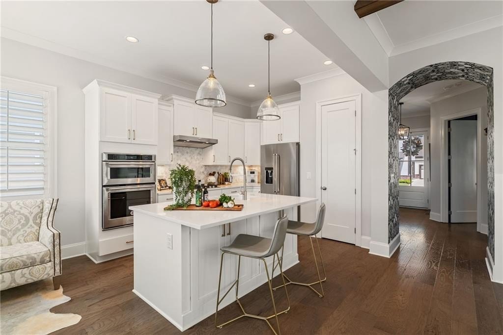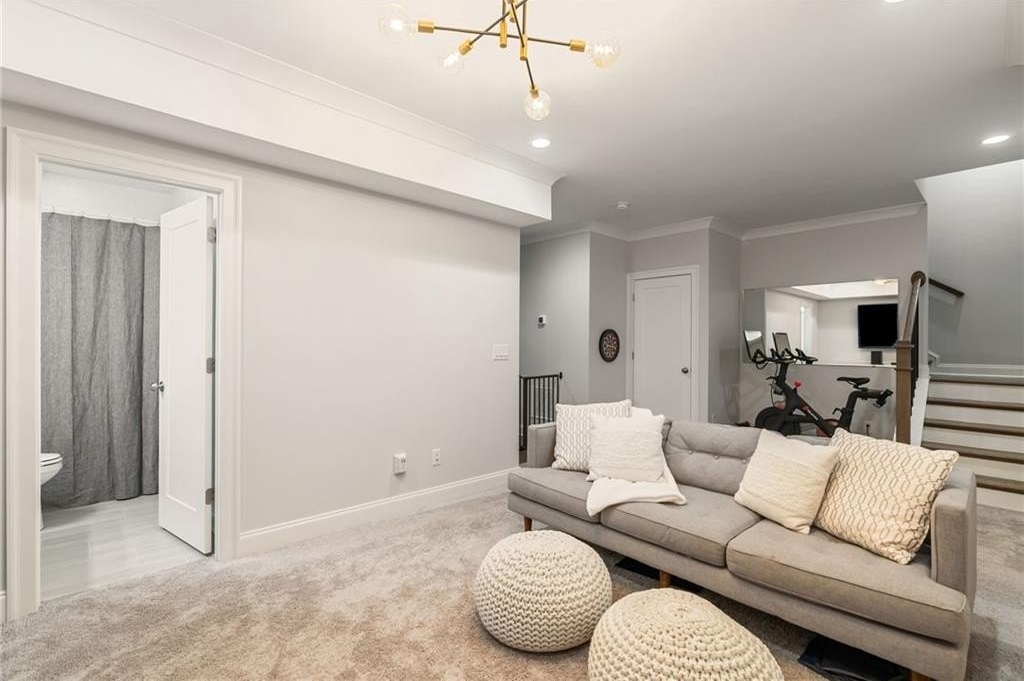 Wow-what an amazing opportunity to be in the sought after live-work-play Vickery community! Beautiful Vickery home featuring 3 outdoor living spaces! 2 covered porches spanning across the front of the home plus a deck on the back of the home! Popular floor plan offers the perfect mix of functionality with designer aesthetics! Guest suite on the main level with a full bath-makes for a great flex room! Very bright and open concept plan with the main floor featuring beamed ceilings, a chef’s modern kitchen, warm and comfortable family room w/ fireplace, a wall of windows and a breakfast/sitting room, plus a formal dining room*Terrace level offers a flex room that makes for great space for a media room/office/exercise room/guest overflow space/etc and features an en suite bathroom! A mud drop area offers a nice place for book bags and shoes when entering the home! Upstairs features a primary suite upgraded with hardwood floors and ceiling beams! His and hers closets in the modern primary bath with an oversized shower and separate vanities!