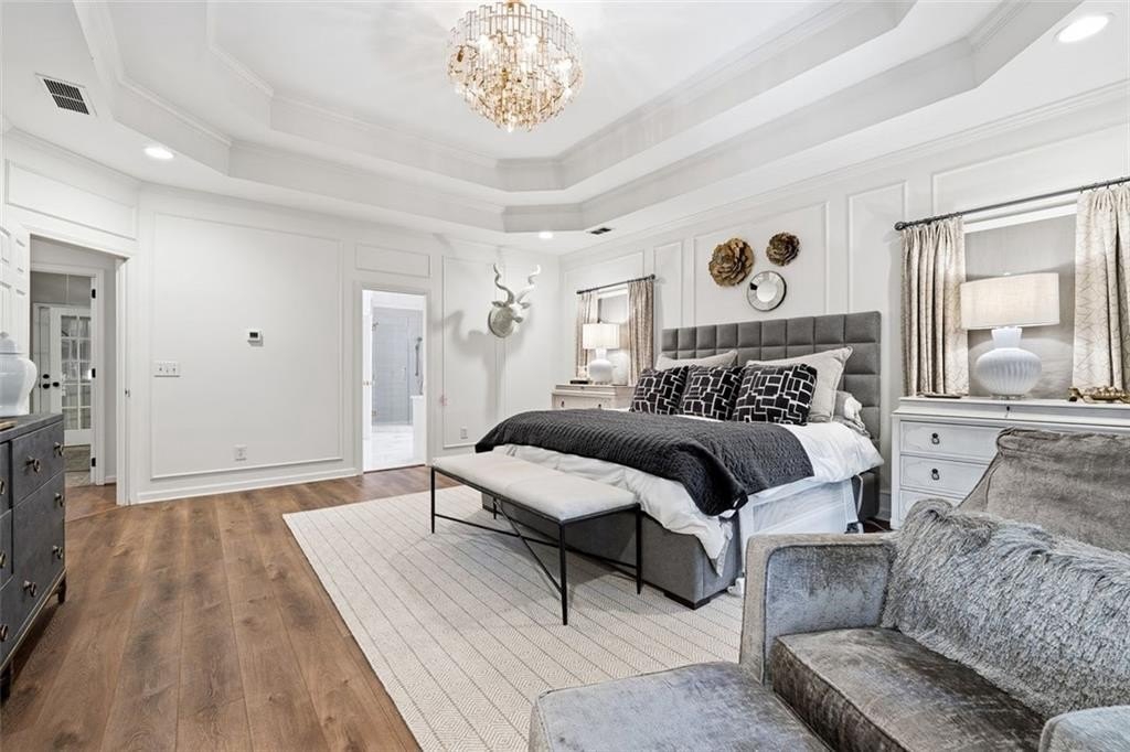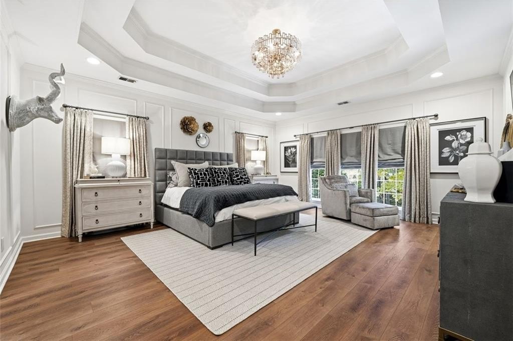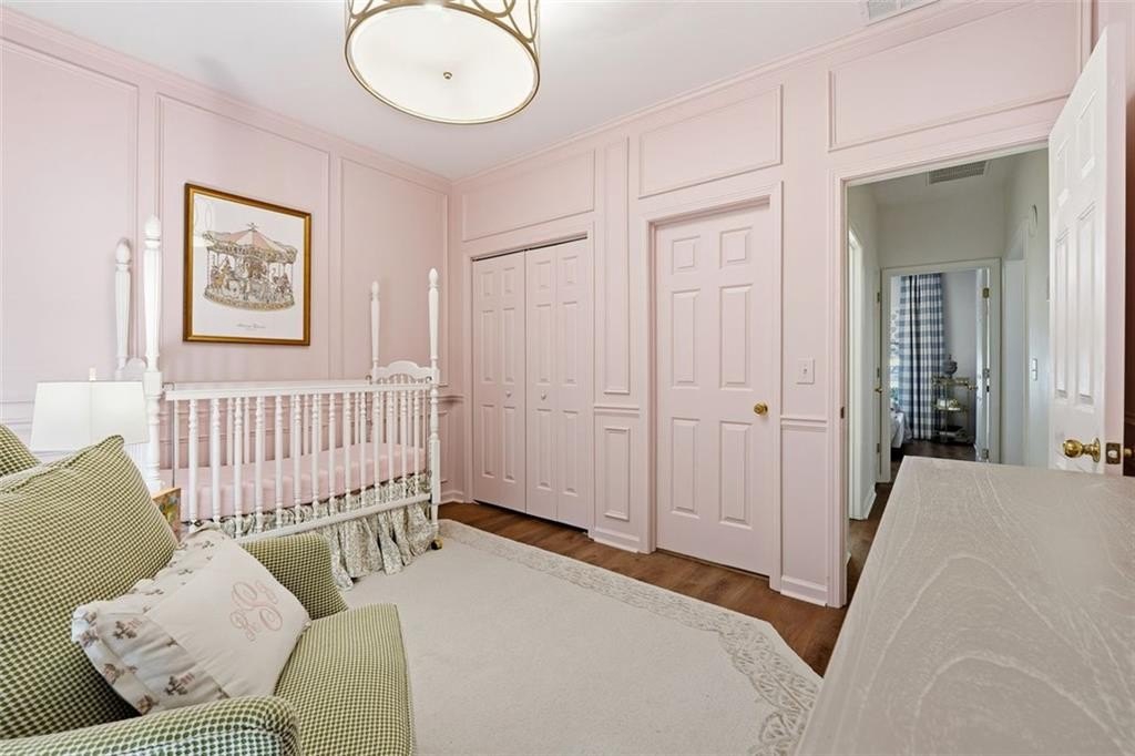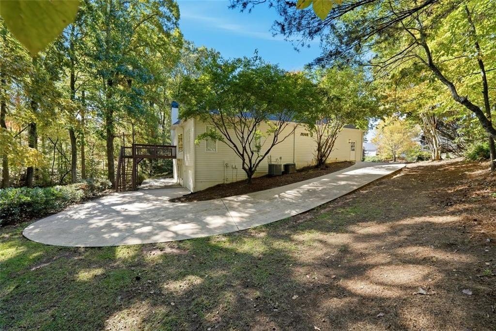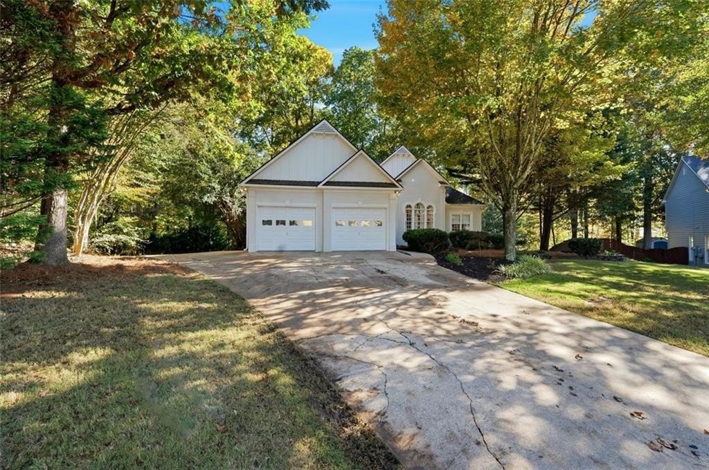 Gorgeous Designer Ranch with Finished Terrace Level – Perfect for Multi-Generational Living! Welcome to this beautifully renovated 5-bedroom, 3-bath ranch home located on a serene cul-de-sac lot backing to a tranquil creek. Thoughtfully designed, the finished terrace level offers a complete in-law or teen suite with a private entry. The main level features 3 spacious bedrooms and 2 full baths, including a luxurious primary suite remodeled by Fox Hill Interiors with a spa-inspired ensuite boasting dual shower heads, double vanities, and a dedicated makeup counter. Throughout the home, you’ll find other designer upgrades from Fox Hill Interiors including paneled walls, custom wallpaper, Visual Comfort lighting, and a white brick fireplace in the vaulted family room. Enjoy the new luxury vinyl tile flooring, renovated baths, and an open-concept kitchen with a breakfast bar and eat-in area—perfect for everyday living and entertaining. The terrace level offers incredible flexibility, featuring 2 additional bedrooms, a full bath, a second full kitchen, a large living area, and a flex room—ideal for guests or extended family. A rare find, this property includes two 2-car garages—one on the main level and another on the terrace level—for a total of 4 garage spaces and plenty of parking. There is a driveway to the private entrance to terrace level. Set on a beautifully wooded half-acre lot, this home offers peaceful creek views and easy walkable access to the Cumming City Center via a dedicated neighborhood gate from Adair Park. Close to top-rated schools, shopping, dining, and entertainment—this home truly has it all. Come see the designer touches to fully appreciate this exceptional home!