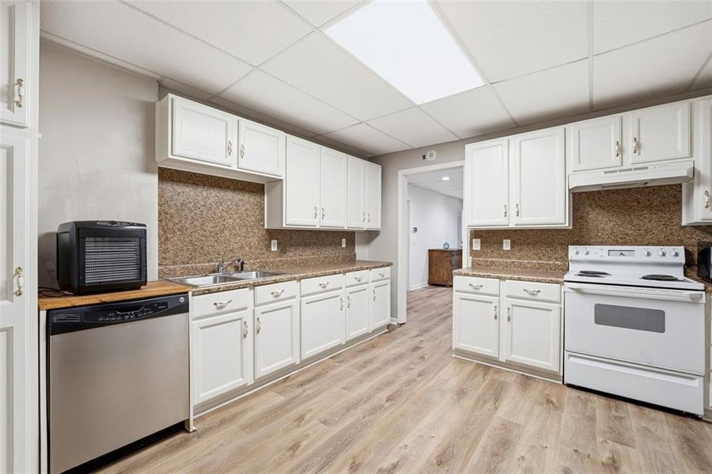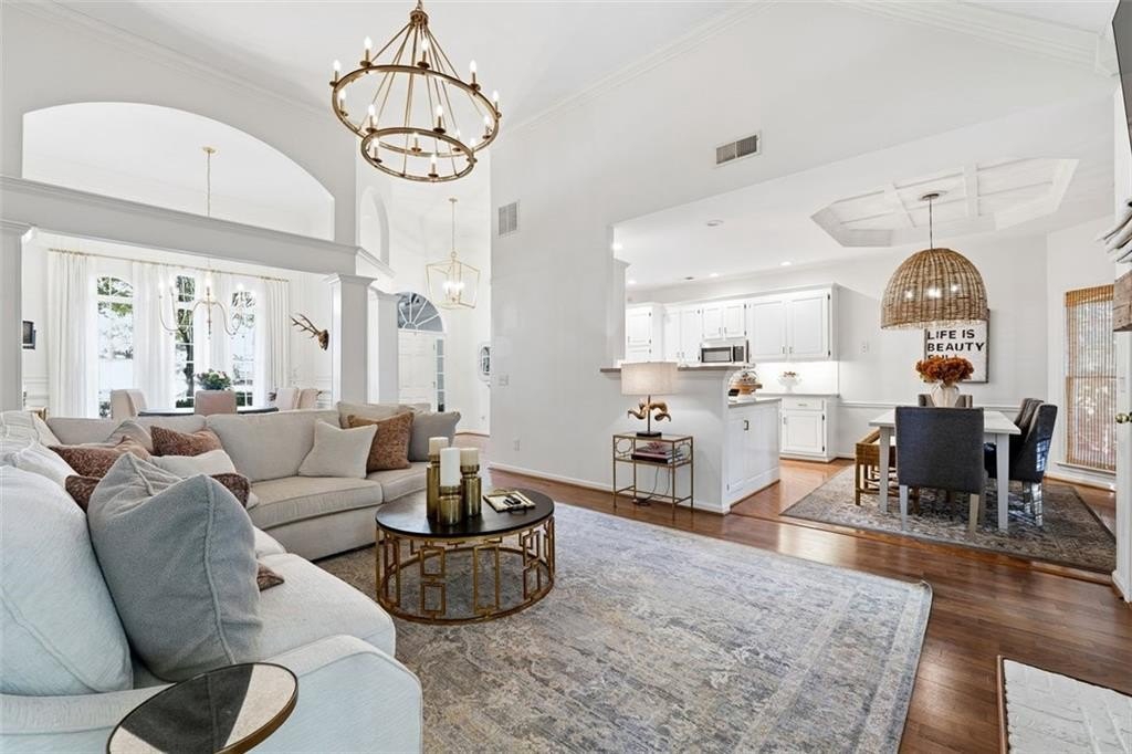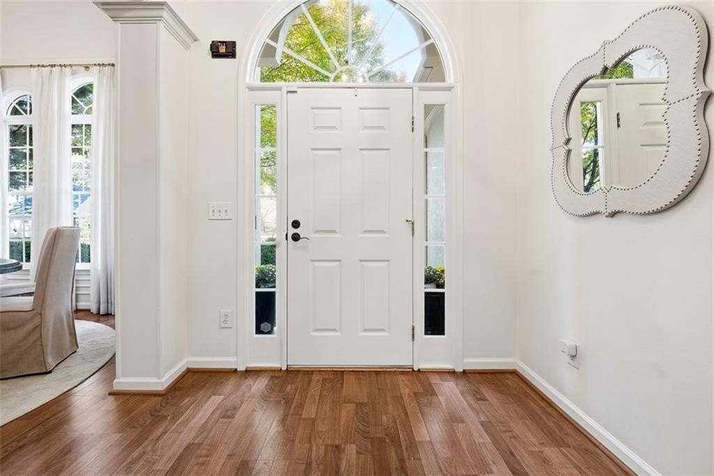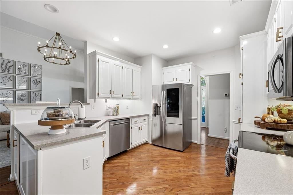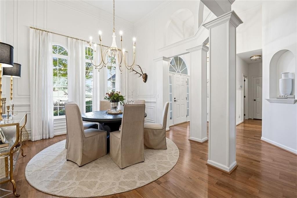 Gorgeous Designer Ranch with Finished Terrace Level – Perfect for Multi-Generational Living! Welcome to this beautifully renovated 5-bedroom, 3-bath ranch home located on a serene cul-de-sac lot backing to a tranquil creek. Thoughtfully designed, the finished terrace level offers a complete in-law or teen suite with a private entry. The main level features 3 spacious bedrooms and 2 full baths, including a luxurious primary suite remodeled by Fox Hill Interiors with a spa-inspired ensuite boasting dual shower heads, double vanities, and a dedicated makeup counter. Throughout the home, you’ll find other designer upgrades from Fox Hill Interiors including paneled walls, custom wallpaper, Visual Comfort lighting, and a white brick fireplace in the vaulted family room. Enjoy the new luxury vinyl tile flooring, renovated baths, and an open-concept kitchen with a breakfast bar and eat-in area—perfect for everyday living and entertaining. The terrace level offers incredible flexibility, featuring 2 additional bedrooms, a full bath, a second full kitchen, a large living area, and a flex room—ideal for guests or extended family. A rare find, this property includes two 2-car garages—one on the main level and another on the terrace level—for a total of 4 garage spaces and plenty of parking. There is a driveway to the private entrance to terrace level. Set on a beautifully wooded half-acre lot, this home offers peaceful creek views and easy walkable access to the Cumming City Center via a dedicated neighborhood gate from Adair Park. Close to top-rated schools, shopping, dining, and entertainment—this home truly has it all. Come see the designer touches to fully appreciate this exceptional home!