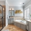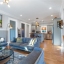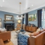 The main level is designed for gathering and entertaining, featuring a fireside great room perfect for cocktails, a warm and stylish dining room wrapped in grasscloth wallpaper, and a chef’s kitchen that opens to a cozy keeping room with a second fireplace. In warmer months, dine al fresco on the private patio just outside the keeping room.