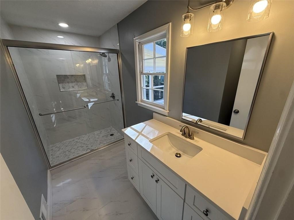 Just in time for the Holidays this recently renovated Ranch home located in the coveted Buford City Schools district checks all the boxes! This 3 bedroom 2 bath home features adorable rocking chair front porch that flows into the Family room with Soaring Ceilings and stained wood beams and a stacked stone fireplace. Low maintenance LVP throughout home, NO CARPET! Kitchen features dark stained cabinets with NEW Quartz counters and tile backsplash and stainless appliances! The adorable sunroom off the kitchen adds additional living space and overlooks your 1/2 Acre backyard and freshly poured patio! Laundry room with cabinet storage could also accommodate a fridge or freezer! Master bedroom flows into renovated Master bath with luxurious tiled floors, new 48" vanity and all new tiled shower with niche and sliding glass door! Secondary bedrooms each have closet and 1 window overlooking front porch and share a hallway bathroom that has been totally redone with new vanity, toilet and tile flooring. Brand new Tub features tile surround and large niche for awesome storage! 2 Car carport recently converted into Garage with brand new garage door and opener! This house also features a BRAND NEW HVAC system with ALL NEW DUCTING in crawl space. Crawl space has been renovated with al new vapor barrier, insulation and sump pump! Septic tank pumped October 2025. Fresh paint throughout and all new baseboards and registers! This home is turn-key ready to make memories this holiday season and is close to Lake Lanier, shopping and the brand new Buford High School! Buyer verifies all dimensions and info. Taxes include Gwinnett only call Buford for 2026 city taxes. Owner/Agent