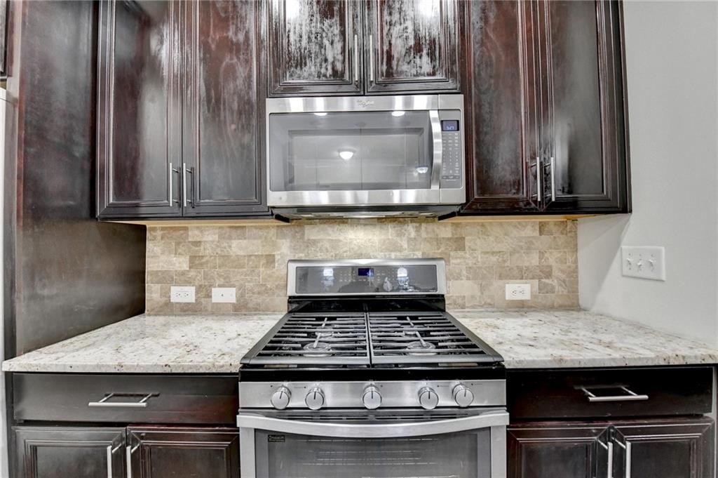 Inside, you'll find freshly painted interiors in a soft antique white, upgraded hardwood floors, and ceramic tile in the kitchen and baths. The chef's kitchen is a true delight with stainless steel appliances, a counter-depth refrigerator, a convection oven, a microwave, and a newer LG dishwasher. The breakfast island comfortably seats three and opens to a spacious family room with a gas fireplace, creating the perfect flow for entertaining or relaxing. Step outside onto the deck with peaceful wooded views-- your own private retreat!