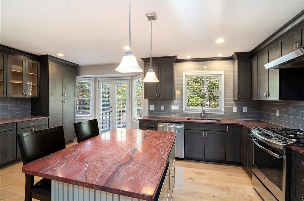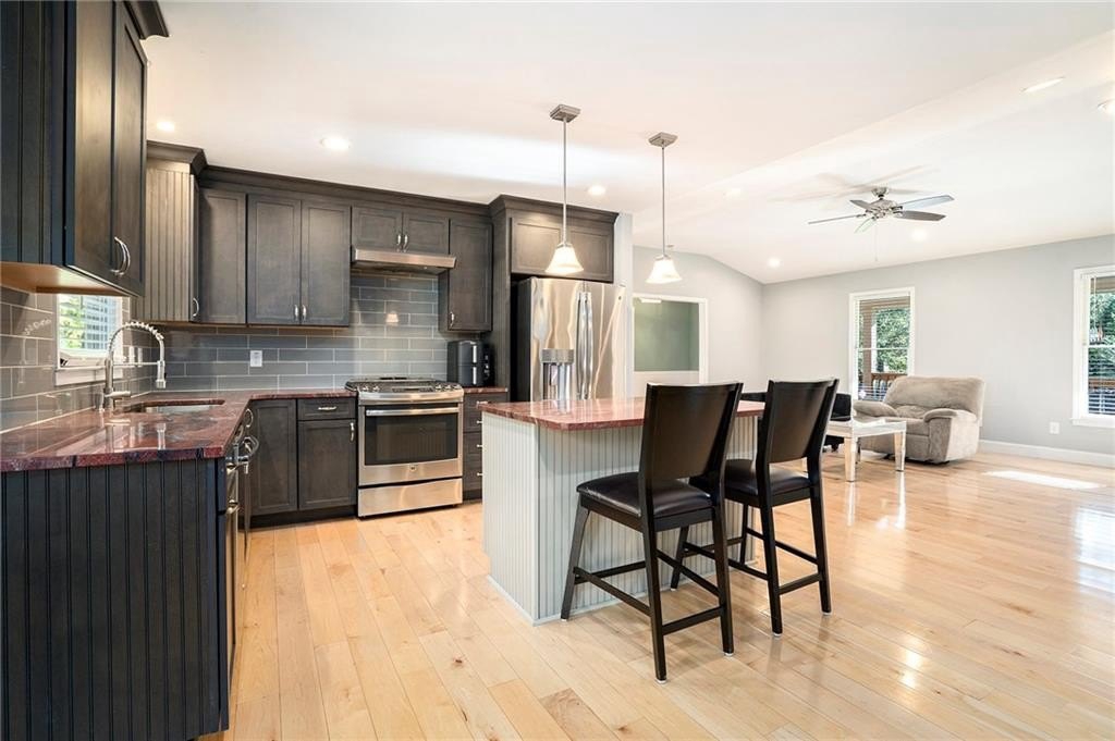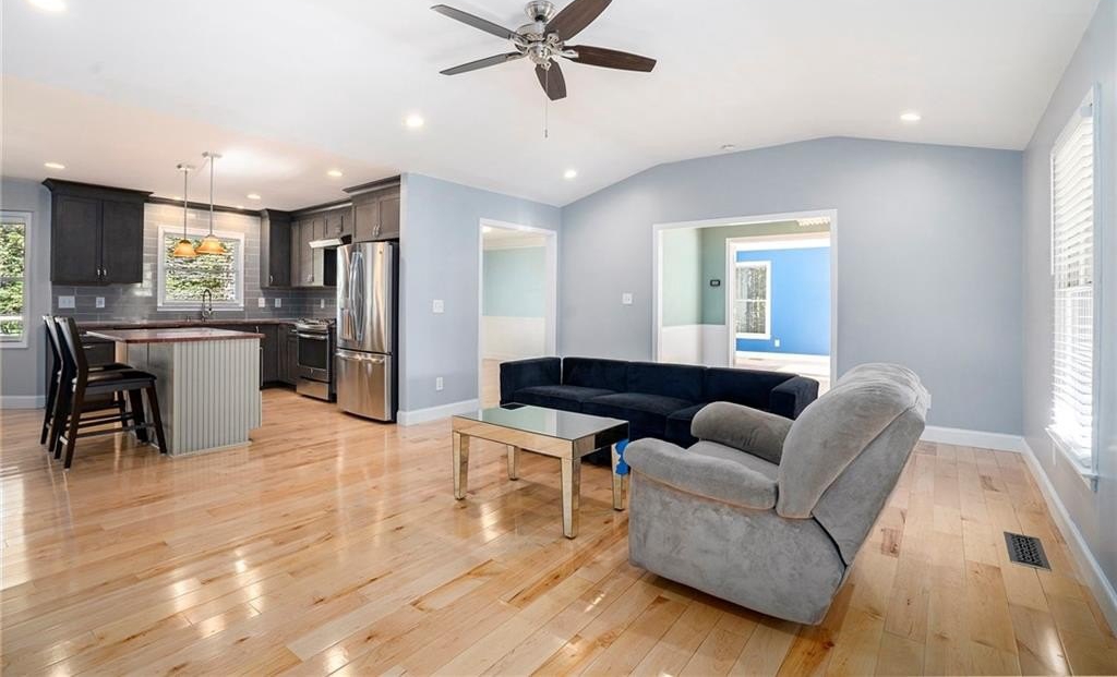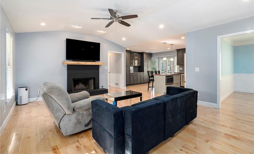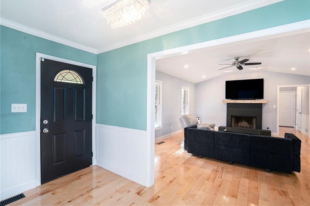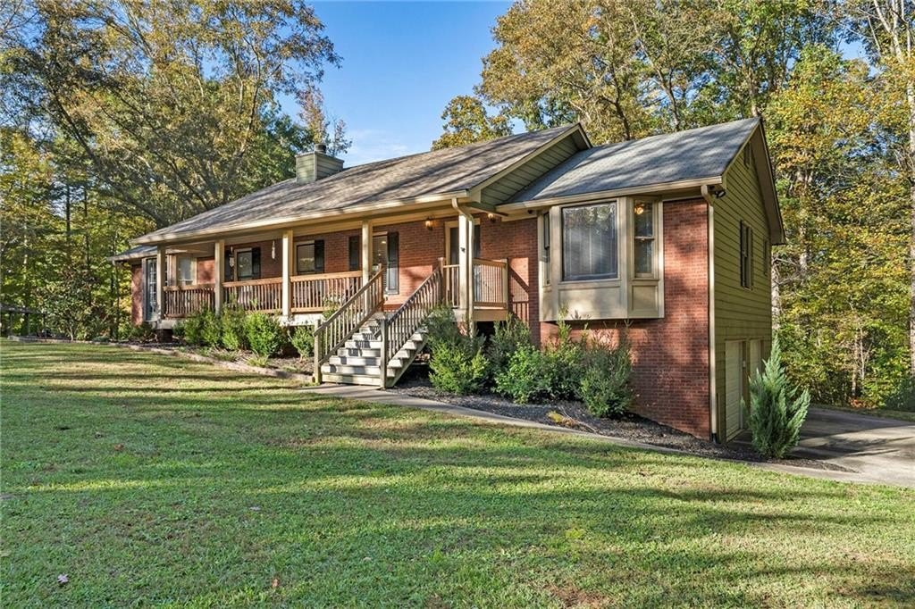 Discover this beautifully updated 3-bedroom, 2-bath ranch nestled on almost 2 private acres. Features include wide-plank maple flooring, vaulted ceiling in living room, and a gas fireplace that creates warmth and ambience. The gorgeous custom kitchen provides ample counter space, two roomy pantries, quartz countertops, and a suite of stainless-steel appliances. Luxe primary bathroom is outfitted with a double vanity, large shower, and relaxing soaking tub, perfect for unwinding after a long day. Enjoy outdoor living on the newer deck or on the covered front porch that stretches across the front of the home - perfect for rocking chairs and morning coffee. Partially finished basement has custom built-ins and remote-controlled indirect lighting for adjustable mood and brightness. Whole-house water filtration system provides clean, purified water to every faucet for added comfort and peace of mind. There is space to accommodate personal vehicles, tractor, camper, or other equipment, free of HOA restrictions. Ideally located near shopping, dining, and retail for easy access to everyday conveniences while maintaining peaceful privacy. Listed below appraised value! Schedule your visit today!