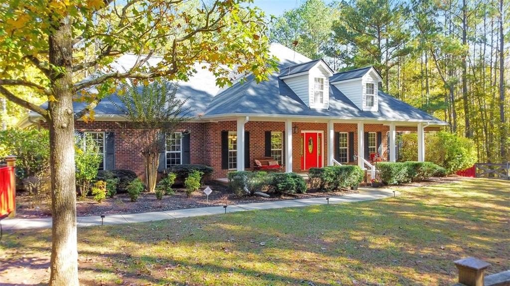 Here it is! The perfect home your family has been looking for! Welcome to your own secluded retreat set back off the road on 3.6 acres, where privacy and tranquility meet timeless elegance. This beautifully maintained 4 bed / 3.5 bath four-sided brick ranch offers space, comfort, and thoughtful updates throughout. The long paved drive leads to a fenced front yard, a covered front porch with new lighting, and a peaceful setting surrounded by woods and backing up to Corps property. Recent updates include a new roof and gutters in 2024, along with fresh interior paint. Step inside to a warm and inviting layout featuring refinished golden oak hardwood flooring on the main level. The formal sitting and dining rooms flank the entrance foyer, which leads to a living room with a gas fireplace and built-in bookcases. Cooking is a delight in the elegant eat-in kitchen, featuring a new dishwasher, new faucet, new backsplash, Corian countertops, and cabinets with pull-outs and lazy Susans. A large heated and cooled sunroom with new carpet overlooks a flat backyard with a paved parking pad or basketball area. The primary suite on the main level has direct access to the sunroom and features a beautifully updated bath with his-and-hers vanities, a newly updated shower, a jetted tub, and new flooring. Two secondary bedrooms, one with an oversized walk-in closet, share a lovely hall bath with a double vanity. The laundry room, with ample cabinet storage, can also serve as a mudroom. The basement, accessible via a chairlift, is heated and cooled and offers a large additional living area with access to the lower patio, a bedroom, a full bath with slate flooring, and an oversized storage room with built-in shelving. The basement can easily accommodate adding a kitchenette for an in-law suite or multi-generational living. Outside, enjoy a barn with a metal roof, a 2-car garage, a separate 1-car boat garage with a huge workshop, extra parking, and trails connecting to Allatoona Creek Park. This home is a true private sanctuary, perfectly combining comfort, style, and functionality for everyday living or entertaining. Come see it today!
