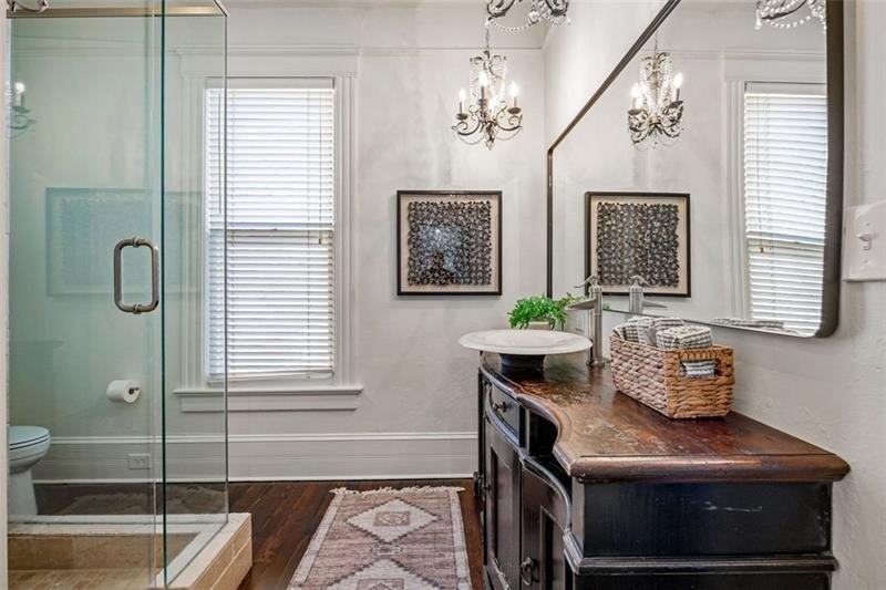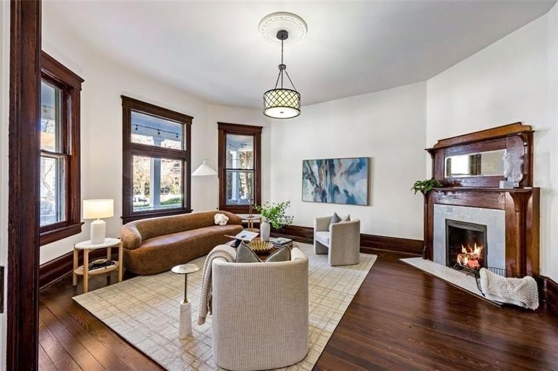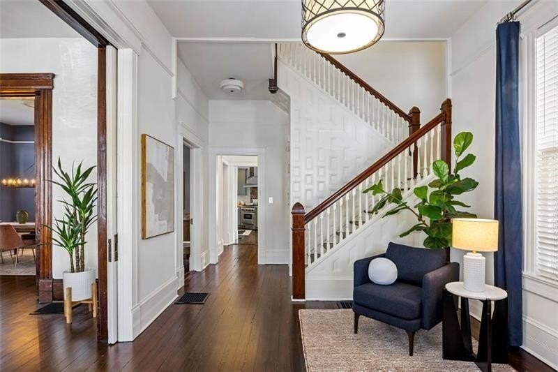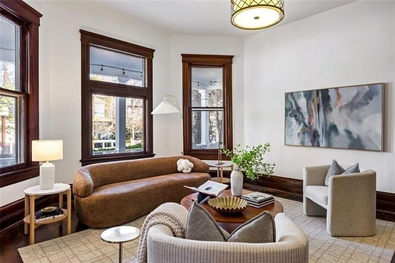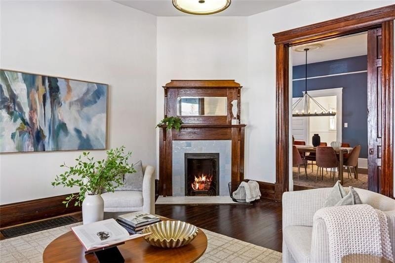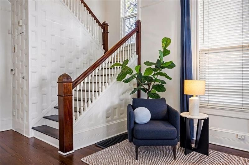 Timeless Victorian Elegance in the Heart of Midtown. Experience a piece of history with this stunning Victorian home, built circa 1896, now available for the first time in 27 years. Nestled in a prime Midtown location, this one-of-a-kind residence is surrounded by wide, tree-lined streets and welcoming sidewalks, offering a charming neighborhood feel just moments from the best of Intown living. Homes here rarely change hands-the neighborhood has incredibly low turnover because it's simply an amazing place to live. Impeccably maintained original period details blend seamlessly with modern updates, ensuring both historic charm and contemporary comfort. Soaring 11-foot ceilings, original hardwood floors, and stately trimmed windows create a warm and inviting ambiance, while picture rail molding and intricate ceiling medallions add timeless character. The home's rocking chair front porch-framed by a classic picket fence and seasonal blooms of gardenias and azaleas-sets the stage for neighborly chats and peaceful mornings. Once inside the grand foyer showcases the elegant staircase, leading into the front living room with double pocket doors opening to a formal dining space that has hosted cherished gatherings for decades. Original working fireplaces in both rooms enhance the home's historic charm. A modernized full bath on the main level boasts an original clawfoot tub, floor-to-ceiling windows, and an electric shade for privacy. The kitchen has won the neighborhood's Iron Chef competition and is outfitted with stainless appliances, painted wood cabinetry, white quartz countertops, and a striking original brick wall behind the Thermador six-burner range with vented hood. KitchenAid 48-inch side-by-side refrigerator/freezer, a white farmhouse sink, and an eat-in sitting area with coffered ceiling and French doors to the back deck make this space both functional and inviting. A large laundry room/pantry provides additional convenience, with back stairs leading to the second level. Upstairs, the charm continues with soaring 10-foot ceilings and an elegant curved-edge wall. The primary suite is a true sanctuary, boasting a third working fireplace, two closets, and a spa-inspired bathroom complete with an oversized rain shower, multiple shower heads, and a built-in bench for ultimate relaxation. The second and third bedrooms each feature decorative coal box fireplaces, adding warmth and character, while the fourth bedroom offers flexibility-perfect for guests, a home office, or a cozy retreat. Additional features include a walk-up attic with permanent stairs, a basement with original bricked room and cellar, fenced backyard, two HVAC systems, foam spray insulation, a whole-house water filtration system, and two hot water heaters. Located within a 5-10 minute journey to Piedmont Park, the Eastside Beltline, Trader Joe's, and Midtown Promenade, as well as Whole Foods, Ponce City Market, Starbucks, (and so much more!) This home places you in the heart of Atlanta's most vibrant scene, and is ideal for pedestrians. Hartsfield-Jackson Airport is just a 20 minute drive away, ensuring convenience for frequent travelers. This is a rare opportunity to own a historic Midtown treasure in a highly coveted neighborhood where people love to stay. Don't miss your chance to make it yours!