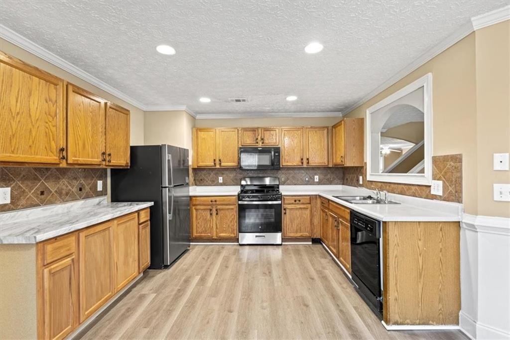 Enjoy a modern open floor plan featuring stainless steel appliances, a formal living room, and a spacious family room with a cozy fireplace that flows seamlessly into the dining area. There’s also a bonus room perfect for a home office or flex space.