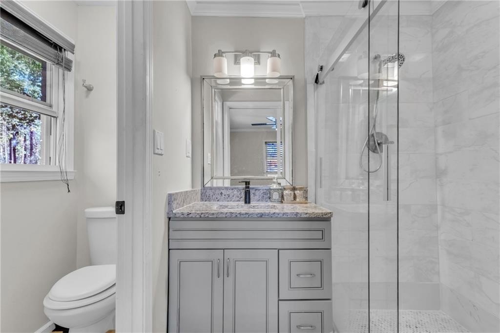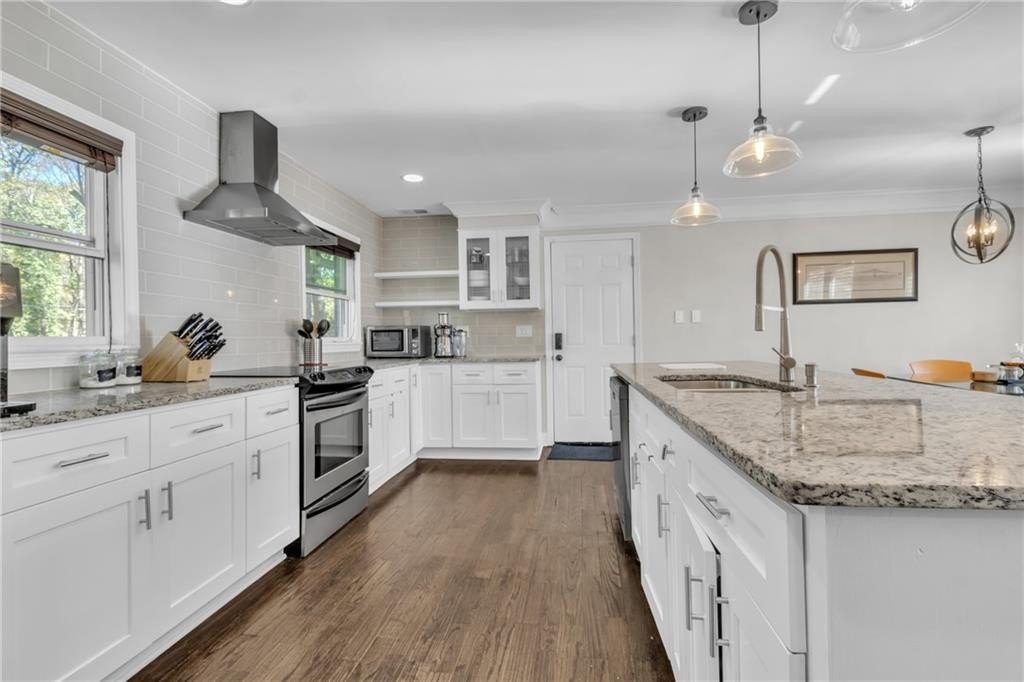 Beautiful sums up this 4 level, 4brick sided home located inside I-285 just mins from I-20. Step into the main floor with an open floor plan leading you into the living room, Kitchen and dining area. A lot of windows that give so much of natural light. Kitchen has the Stainless steel appliances, white beautiful shaker cabinets a huge granite island ready for you to entertain family and friends. The two car garage is just by the kitchen which makes grocery shopping a delight. A stairway takes you upstairs to the Master bedroom with sitting area, with full bathroom. New large platform deck. There is a must see two story-barn. Large backyard. Two car garage. This 4 sides brick beauty has it all!