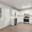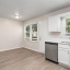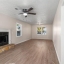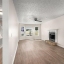 The kitchen includes white cabinetry and stainless-steel appliances—designed for both efficiency and style. Just off the kitchen, the family room provides a comfortable gathering space highlighted by a classic fireplace.