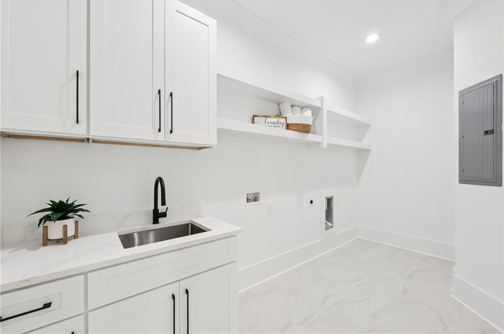 Additional highlights include real marble flooring in the powder room, coffered ceilings, an Ecobee smart thermostat, dual laundry rooms (including a spacious main-level laundry with sink), and a four-car epoxy-finished garage.