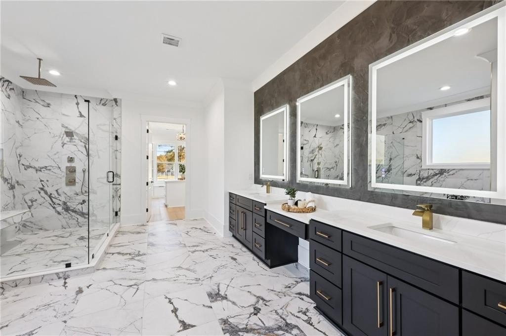 In an Amazing location the home of your dreams awaits... Beyond the gated entrance, this exceptional custom estate exemplifies refined craftsmanship and timeless design. A grand double-door steel entry opens to a dramatic two-story foyer and beautiful entry, soft Venetian plaster accents that flow throughout the home. Oversized primary kitchen and prep kitchen which makes this home an amazing place to entertain. Engineered white oak hardwood flooring extends across both levels, adding warmth and understated sophistication to every room.