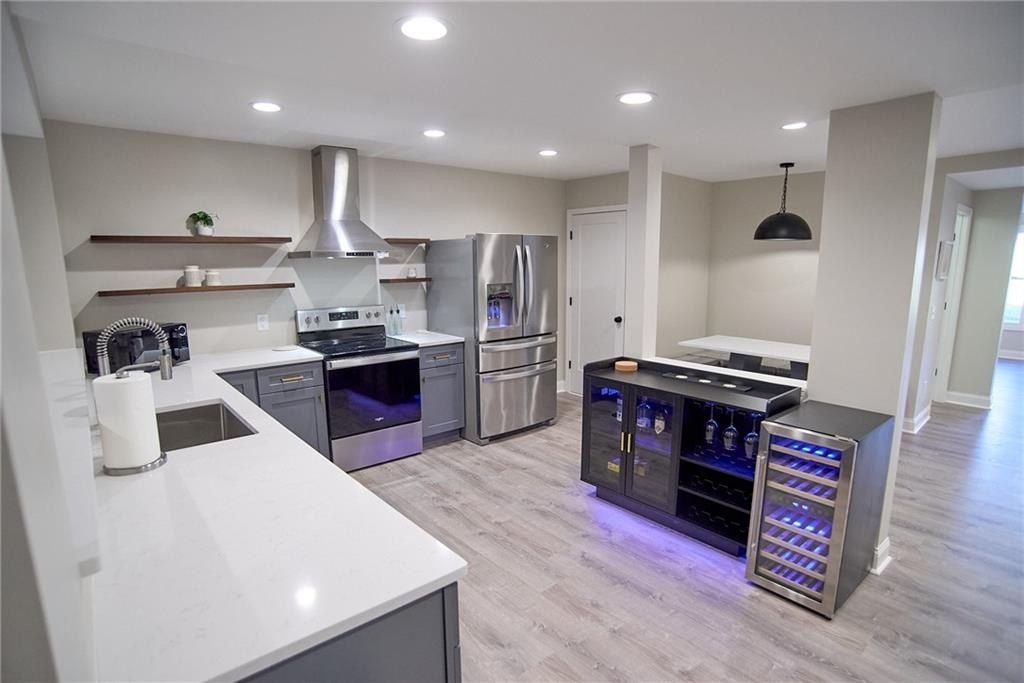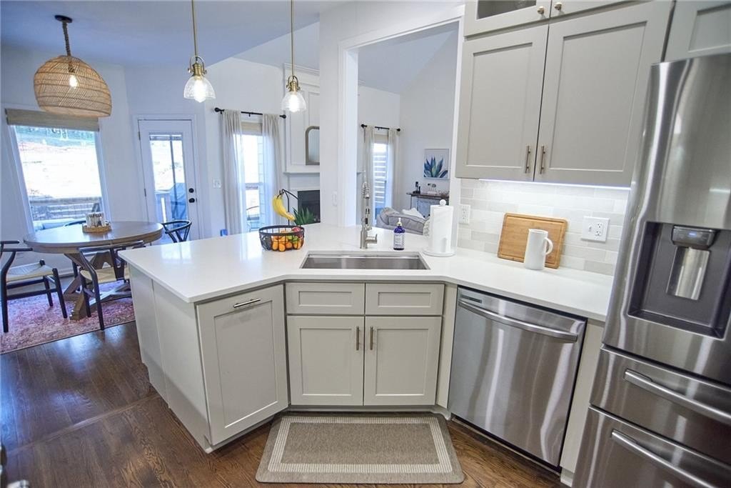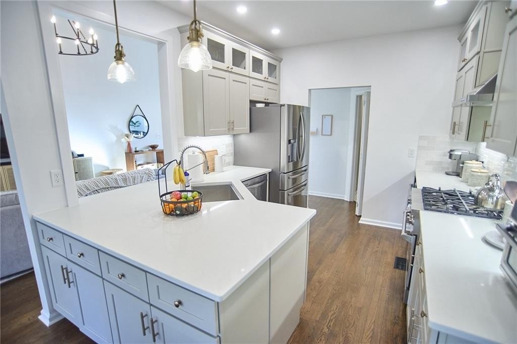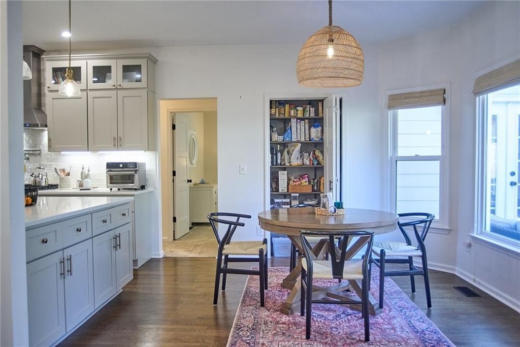 Step inside to find a bright, open layout filled with thoughtful updates completed in the last three years. Fresh Sherwin-Williams interior paint, refinished hardwood floors, and custom window treatments set the tone for quality and care. The newly renovated chef’s kitchen features high-end stainless appliances, stone countertops, and custom cabinetry—flowing easily into the dining room, breakfast nook, and living spaces for effortless entertaining.