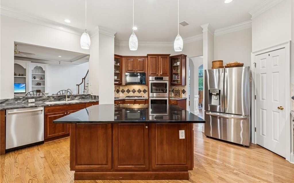 Tucked away in the gated enclave of Wescott you will find this attractive 4 sided brick, meticulously maintained "executive" home. With just 64 homes in the neighborhood , this one boasts the largest and most private backyard. As you enter, a sunny 2 story foyer will lead you to the main floor that has many special features: Arched doorways, hardwood floors, high trayed ceilings, crown molding and a floor plan that lends itself to easy comfortable living . You will find a cozy family room has a fireplace and a wall of built-in cabinets. Opening to the family room is a (REAL) chefs kitchen featuring top of line stainless steel professional equipment : Bosch double ovens, Induction cooktop and a gas cooktop, vent hood, dishwasher and much more. The center island with granite top provides plenty of workspace and the number of kitchen cabinets provides lots of storage! The walk-in pantry is also very useful. The very pretty and covered screened in porch flows nicely from the family room and kitchen making entertaining seamless. The deck overlooks a private, recently sodded and wooded fenced backyard. Adjacent to the chefs kitchen is a nice-sized and comfortable office featuring a bay window with shutters, built ins and double doors for privacy. You will also find a bright and welcoming living room and separate dining room perfect for hosting dinner guests. The pretty powder room rounds out the main floor. Upstairs the oversized primary bedroom features wood floors, tray ceiling and a seating area with a double-sided fireplace and a walk-in closet. The adjacent large primary bath has a double vanity, spa tub, tile floors, and fireplace . The secondary bedrooms are ample sized and share a hall bath with double vanity. One bedroom is a sewing/hobby room and the other set up as a movie/TV room- both can very easily be converted back to traditional bedrooms. The washer and dryer remain in and with the easy working laundry room. On the terrace level is a bedroom, full bath, second kitchen and den/living room. This area is great for teens, in-laws and of course guests. The back yard and grilling area can be accessed from here. Extra storage can be found in the two car garage. The "she-shed" (east side of house) and garden beds also remain. This is home is conveniently located within walking distance of Atlanta's most respected hospitals (AKA "Pill Hill"), and near shopping, schools, restaurants and just about everything that Sandy Springs, Brookhaven and Atlanta have to offer. Very easy access to 400. A full list of impressive upgrades and improvements can be found in REMINE. This home really is great! Don't miss the opportunity to show it to your clients that desire easy living, lots of space, privacy, security, and convenience!!
