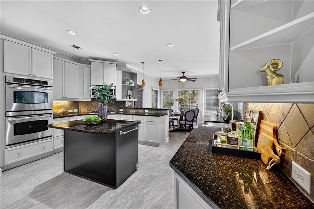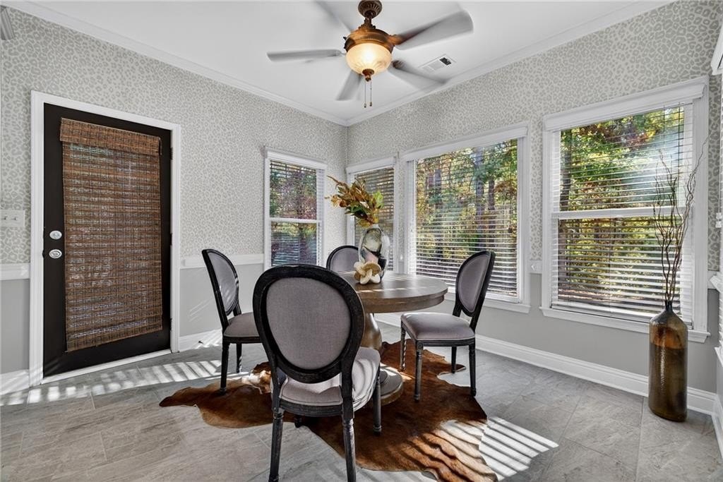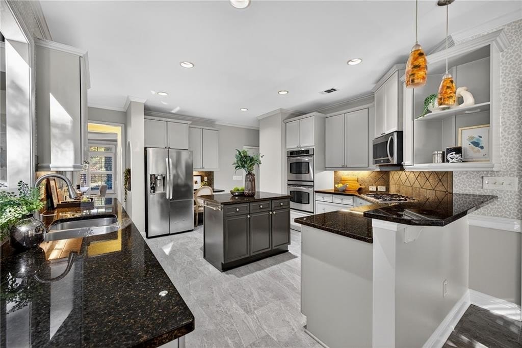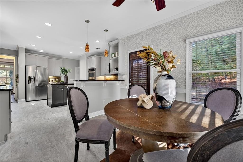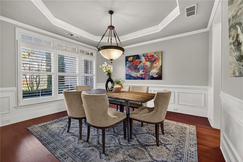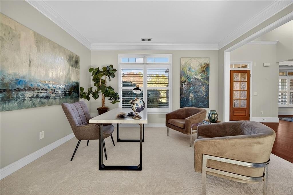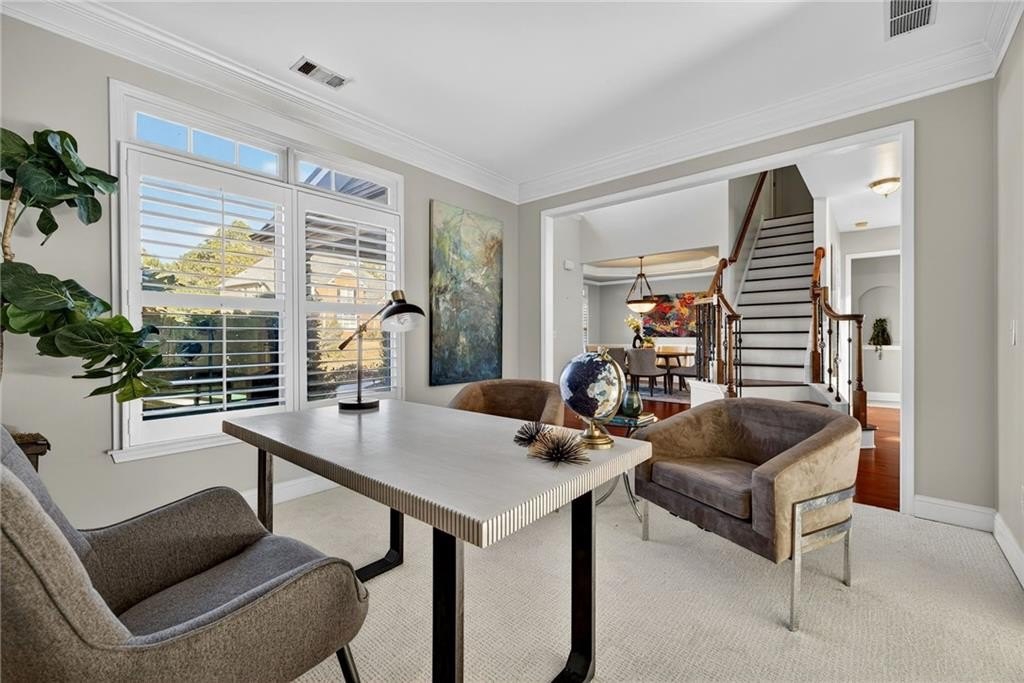 Welcome home to this beautifully crafted home in sought after Seven Hills offering timeless design and thoughtful details throughout. Perfectly positioned on a wooded and desirable creek lot, this residence combines quality construction with exceptional livability. Step inside to a light-filled main level featuring a formal living room, elegant dining room, and a versatile office/library space. The heart of the home features a stunning family room with a dramatic wall of bowed windows, custom built-ins, serene views and abundant natural light. The well-appointed kitchen offers generous cabinetry, new tile floors and seamless flow for entertaining. Upstairs, the spacious primary suite is a true retreat, complete with a private deck, a large custom closet system, and a spa-inspired bath. 3 additional secondary bedrooms can be found providing large closets and ample space for comfort. Multiple decks and porches across the home provide wonderful indoor-outdoor living and peaceful spaces to relax or host guests and three car garages for ease and convenience. Combining craftsmanship, sophistication and a highly sought after location, this executive home delivers the best of style, comfort and community. Enjoy resort style living in North Paulding with an olympic swimming pool and water park, tennis courts, clubhouse and social events -- fit for an active lifestyle. Quality craftsmanship, thoughtful updates, and a premium setting make this home a rare find in one of the area's most sought-after communities!