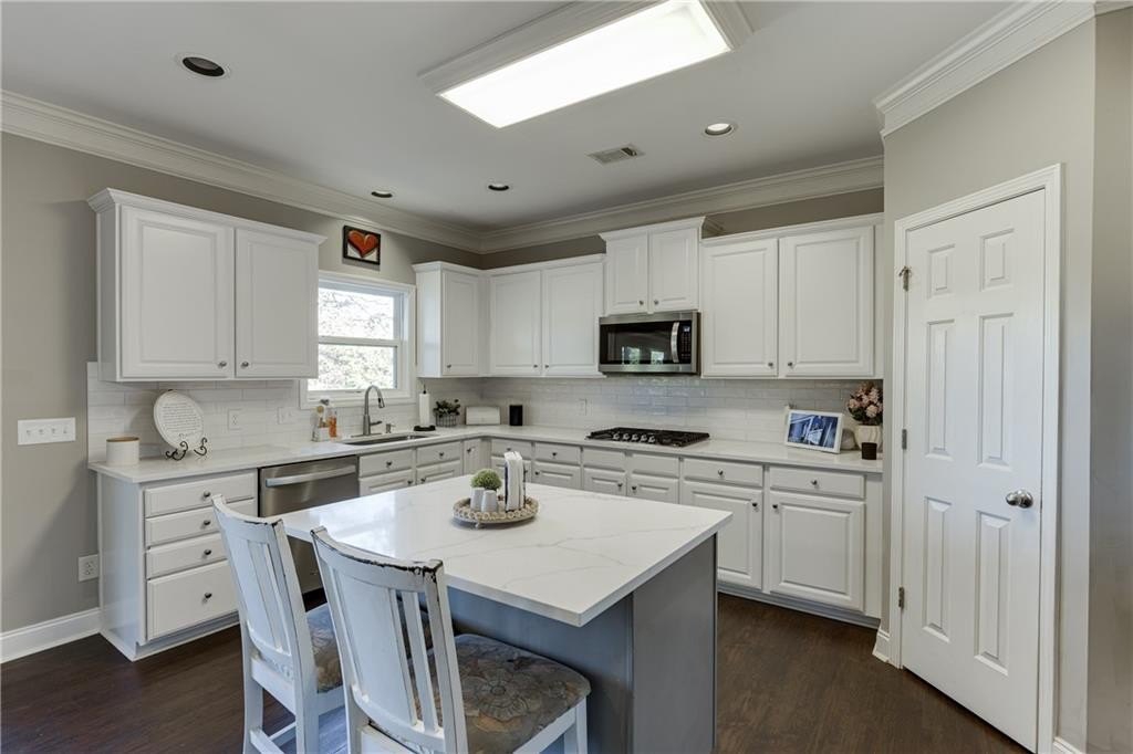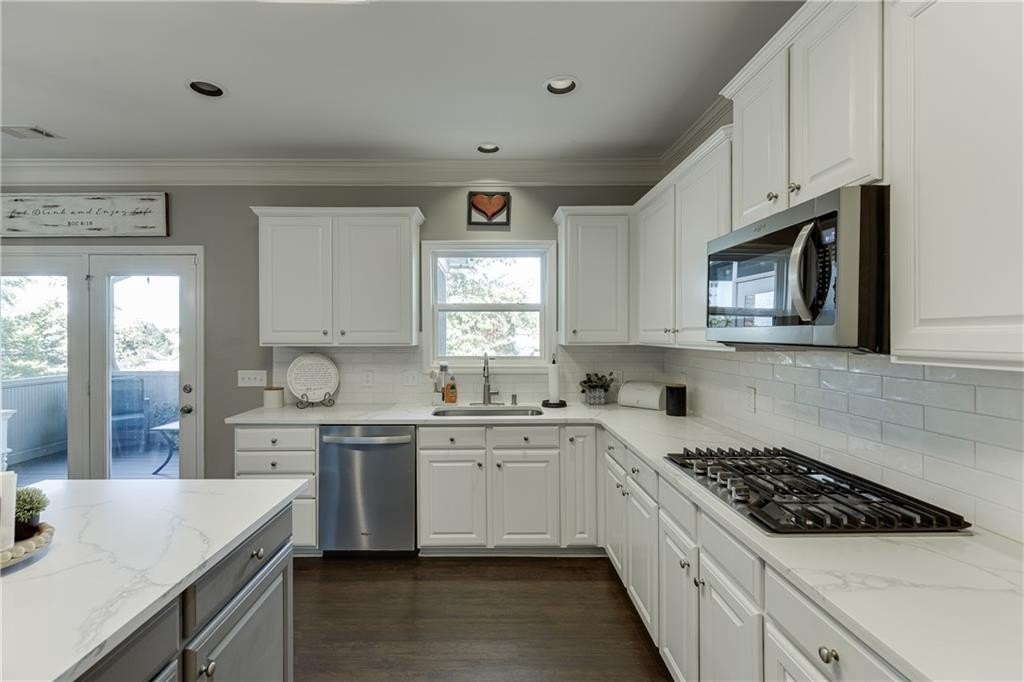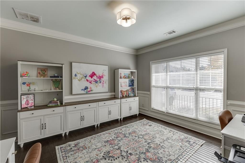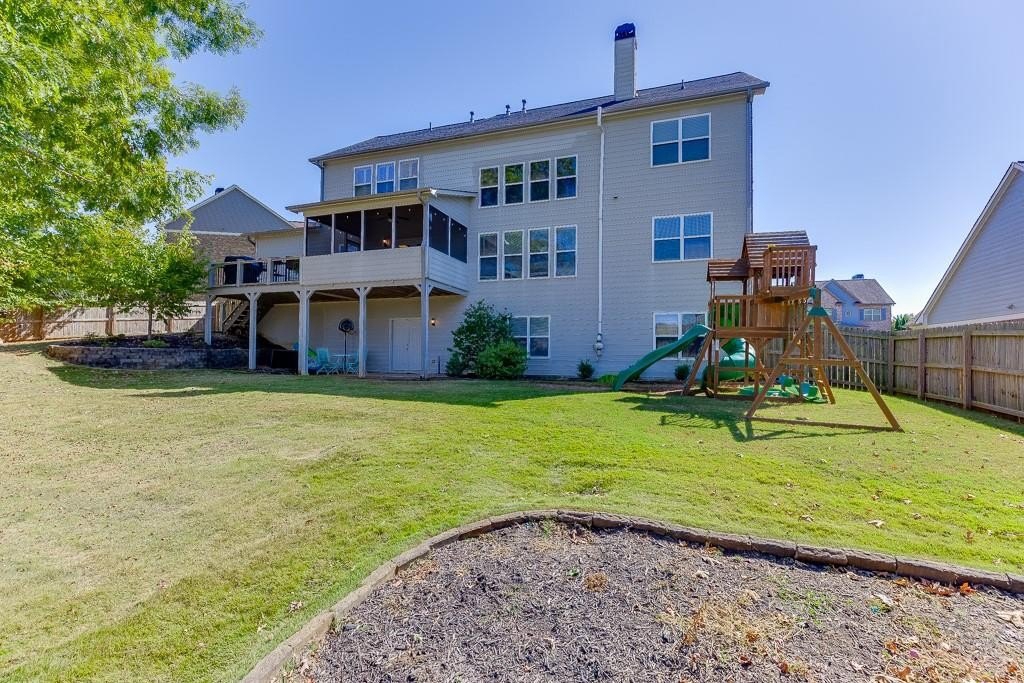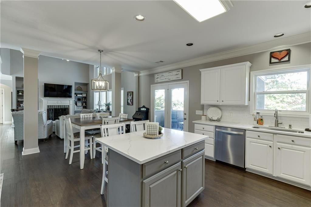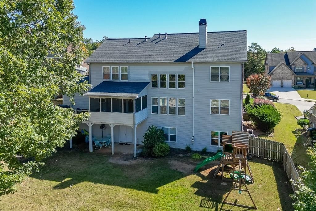 Located in the award-winning Buford City School District, this move-in ready 5 Bedroom/5 Bathroom home is nestled in the desirable Swim/Tennis community of Wildwood on a quiet cul-de-sac lot and features a 3-car garage. A welcoming 2-story foyer opens to a private office with French doors and a formal dining room. The sunlit 2-story living room flows beautifully into the updated kitchen featuring white cabinets, quartz countertops, subway tile backsplash, new appliances, and updated lighting. Enjoy brand new hardwood flooring throughout the main level, upstairs hallway, and the beautifully stained staircase. Step off the breakfast area to a screened porch overlooking the newly fenced, pool-ready backyard, perfect for relaxing or entertaining. A guest bedroom and full bath complete the main level. Upstairs, you'll find three spacious secondary bedrooms and two full bathrooms, along with the large owner's suite featuring a double tray ceiling. The ensuite bath offers granite countertops, a separate shower and soaking tub, and a huge walk-in closet. The fully finished terrace level includes a game area, theater room, and a full bath offering endless entertainment possibilities! Airhockey table, ping-pong table, and theatre chairs will remain with the home. Additional highlights include: new carpet on the main two floors, irrigation system, and a 2-10 Home Warranty. All theater equipment and seating remain with the home!