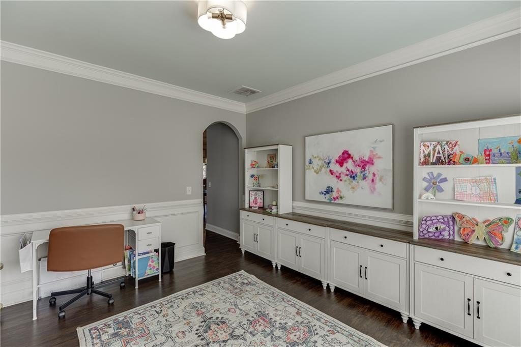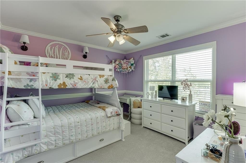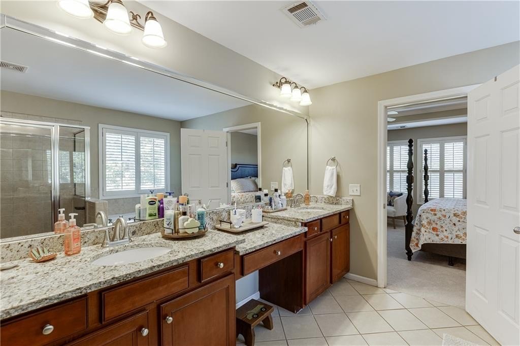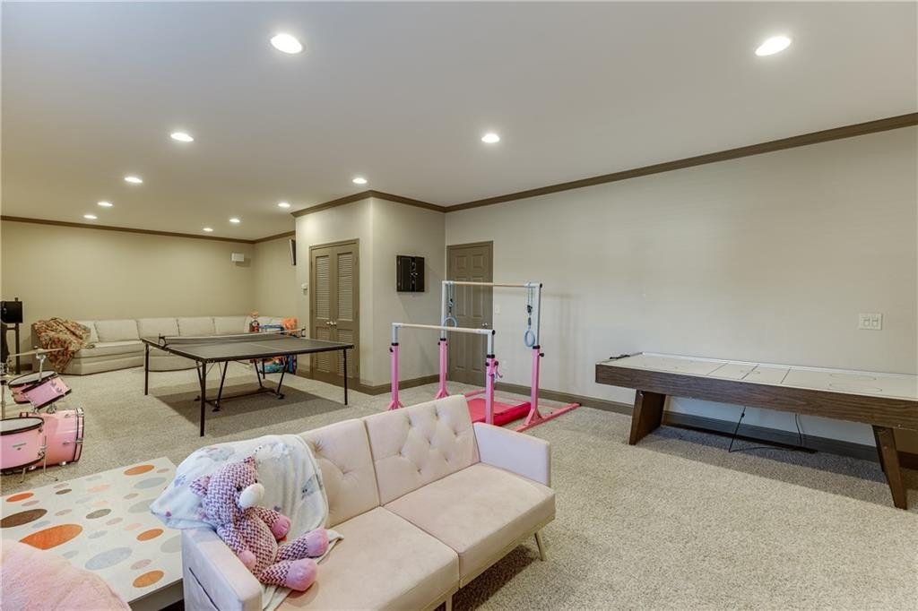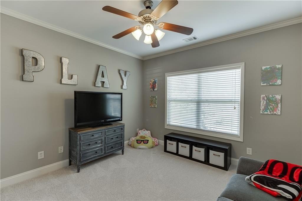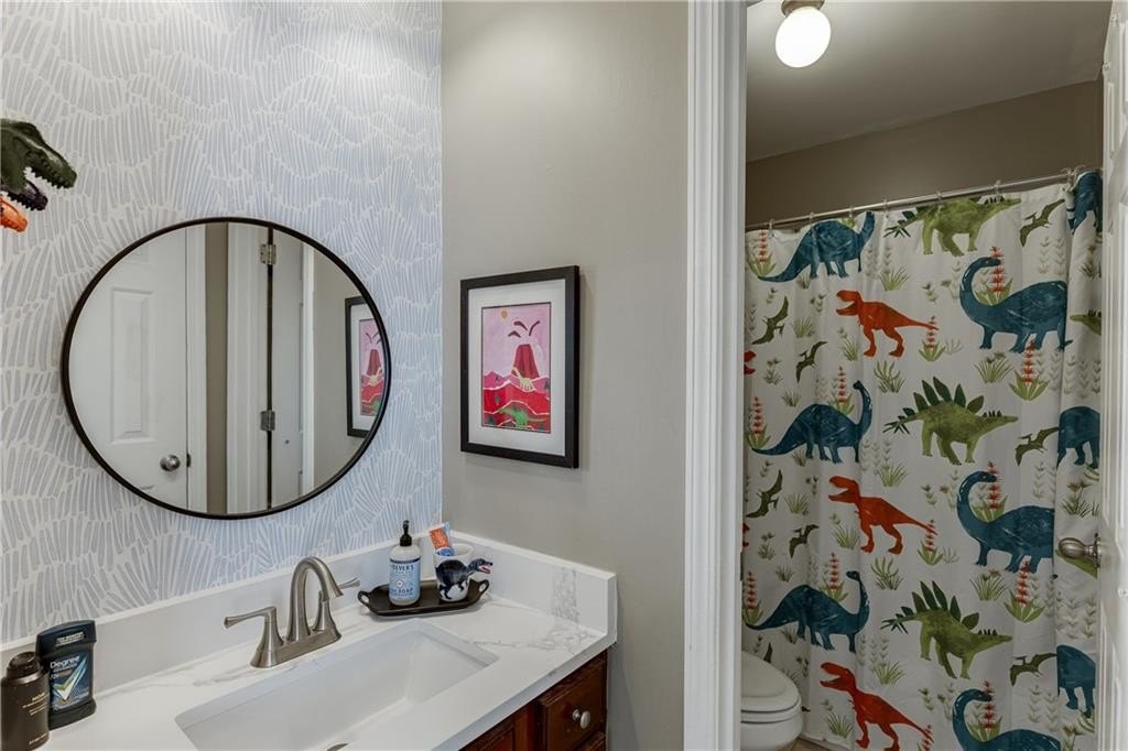 Located in the award-winning Buford City School District, this move-in ready 5 Bedroom/5 Bathroom home is nestled in the desirable Swim/Tennis community of Wildwood on a quiet cul-de-sac lot and features a 3-car garage. A welcoming 2-story foyer opens to a private office with French doors and a formal dining room. The sunlit 2-story living room flows beautifully into the updated kitchen featuring white cabinets, quartz countertops, subway tile backsplash, new appliances, and updated lighting. Enjoy brand new hardwood flooring throughout the main level, upstairs hallway, and the beautifully stained staircase. Step off the breakfast area to a screened porch overlooking the newly fenced, pool-ready backyard, perfect for relaxing or entertaining. A guest bedroom and full bath complete the main level. Upstairs, you'll find three spacious secondary bedrooms and two full bathrooms, along with the large owner's suite featuring a double tray ceiling. The ensuite bath offers granite countertops, a separate shower and soaking tub, and a huge walk-in closet. The fully finished terrace level includes a game area, theater room, and a full bath offering endless entertainment possibilities! Airhockey table, ping-pong table, and theatre chairs will remain with the home. Additional highlights include: new carpet on the main two floors, irrigation system, and a 2-10 Home Warranty. All theater equipment and seating remain with the home!