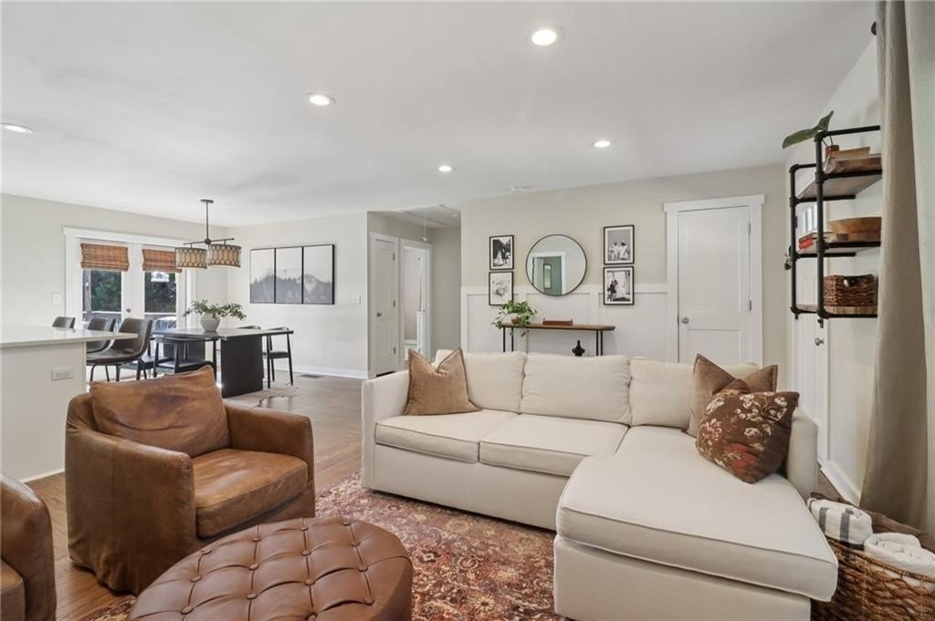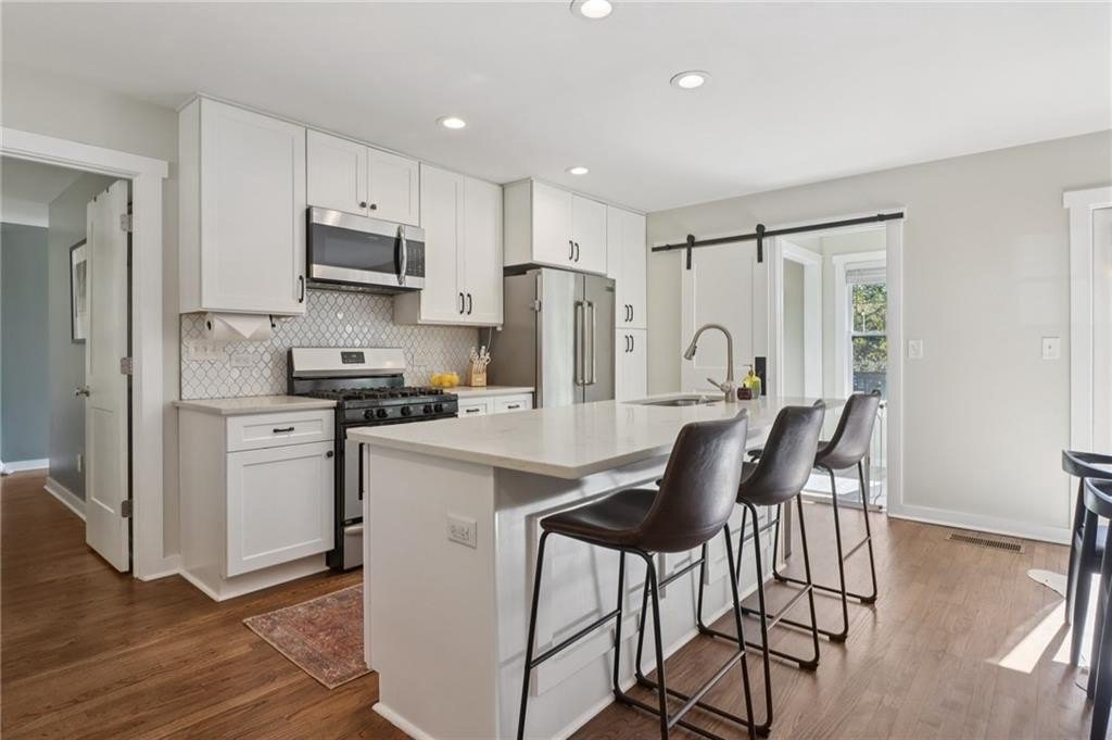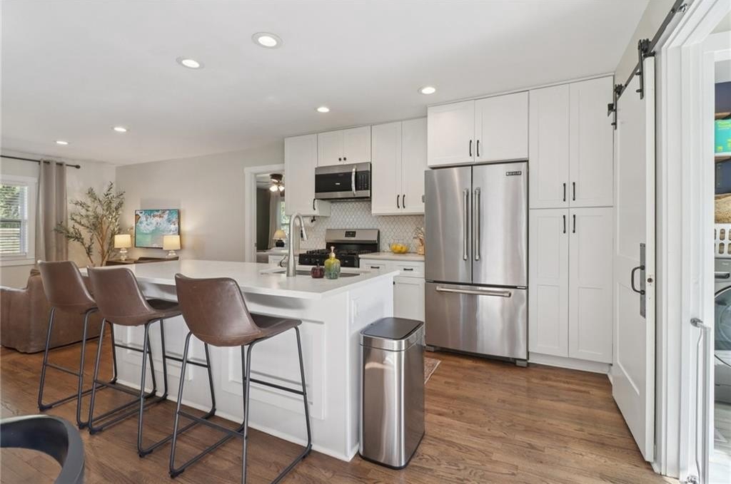 Step inside to an open-concept main level perfect for entertaining, featuring a spacious living area that flows seamlessly into the updated kitchen. Enjoy cooking and hosting around the large island with breakfast bar, quartz countertops, and sleek stainless steel appliances.