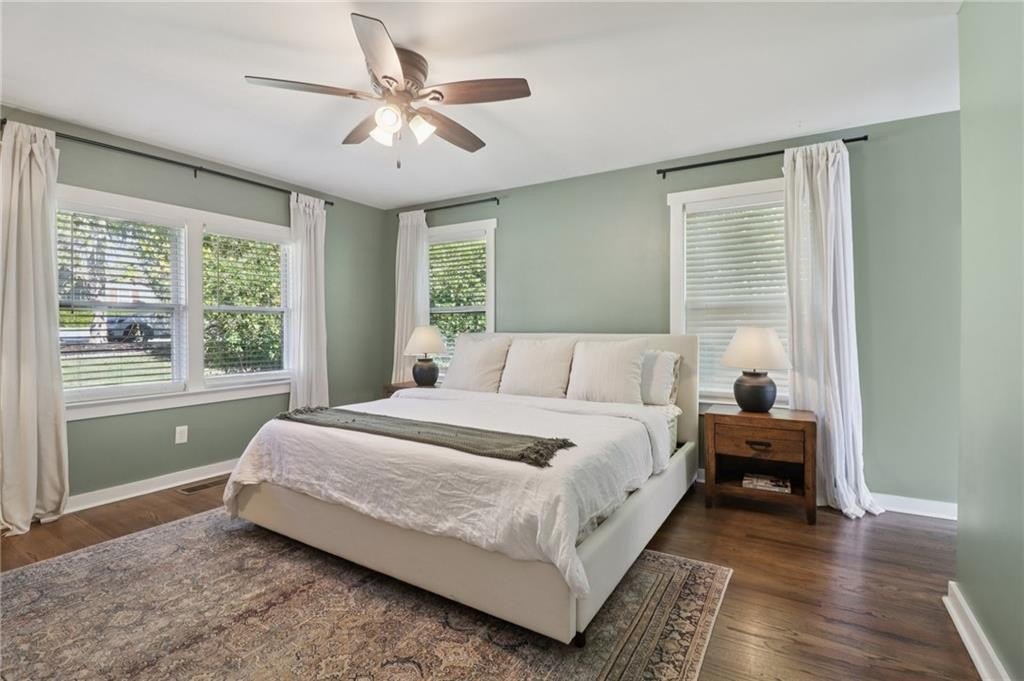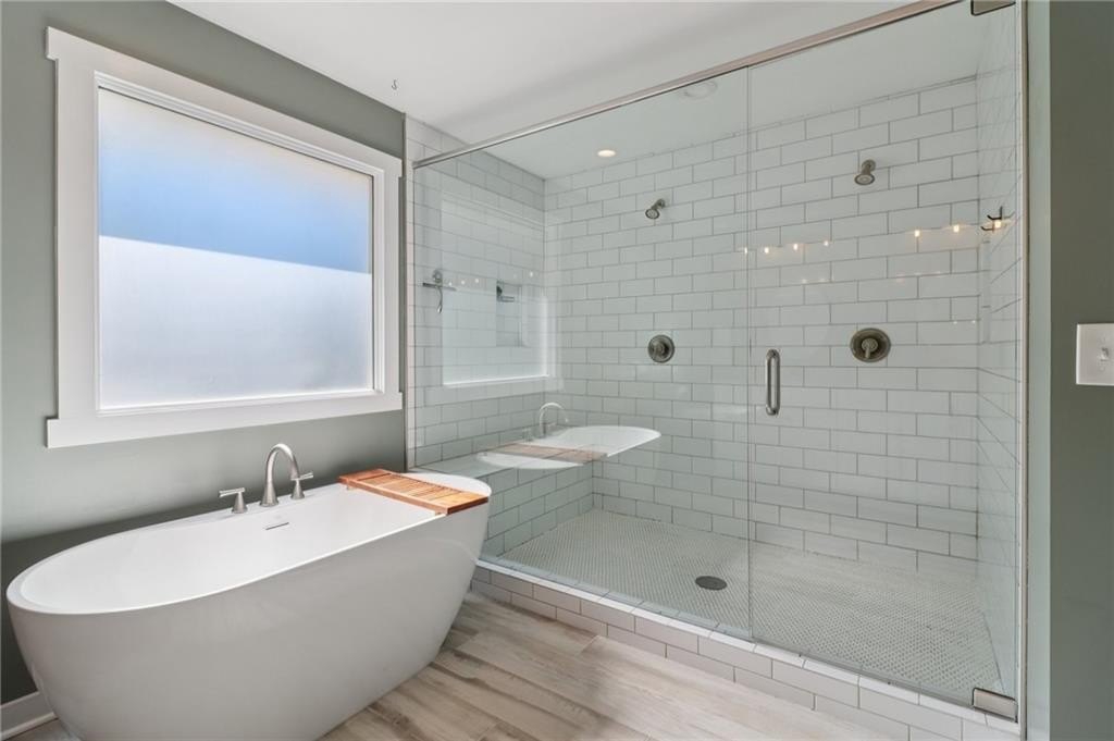 The primary suite offers a luxurious retreat with an elegant ensuite bathroom boasting a large walk-in shower with dual shower heads and a soaking tub ideal for relaxation. Two additional bedrooms and a second full bath provide plenty of space for everyone.