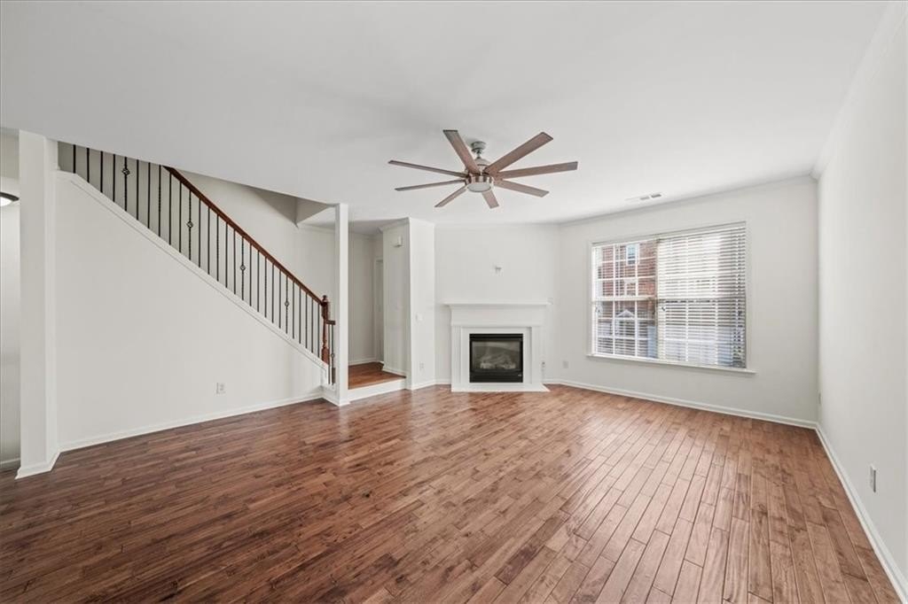 Welcome to your perfect retreat in a super quiet neighborhood that offers the best of both tranquility and convenience. This stunning property is nestled in a gated community, ensuring peace and security for you and your loved ones. Step inside this bright and open floor plan, featuring gorgeous hardwood floors on the main level. The updated kitchen opens to a dining room and living room with a cozy fireplace, creating a perfect space for entertaining. The upper level boasts a roommate floor plan, offering privacy and comfort. The downstairs includes an additional bedroom or den with a stubbed bath, providing flexibility for guests or a home office. Exterior has just been repainted and hardwood floors have been refinished. Step outside to an awesome back deck and patio, ideal for outdoor living. For nature enthusiasts and families alike, the community boasts good green space for kids and dogs as well as quick access to the Chattahoochee River. There is also quick access to major highways and the home is located within walking distance of walking trails and minutes to Truist Park. This convenient community offers a range of amenities, including a pool, clubhouse, and fitness center. Despite its Atlanta address, you'll benefit from Cobb County taxes, providing the best of both worlds. You'll also find a neighborhood where great friendly neighbors become long-term friends. This home is a rare find, combining location, community, and luxury. Don't miss the opportunity to make it yours. Visit today and experience all that this exceptional property has to offer!