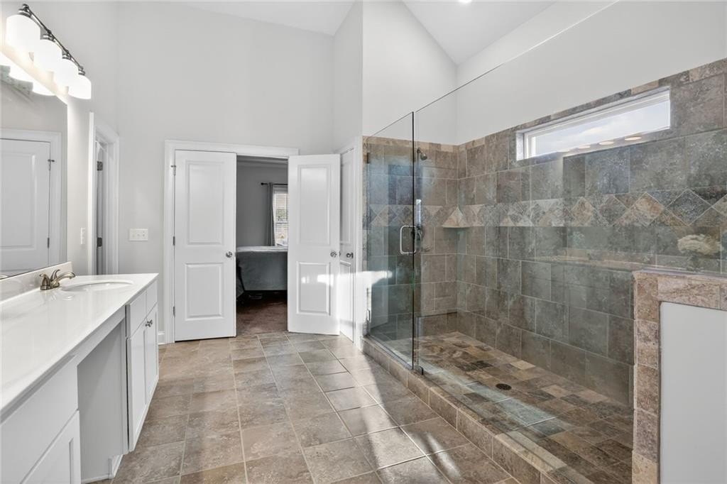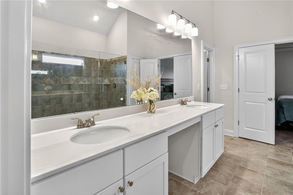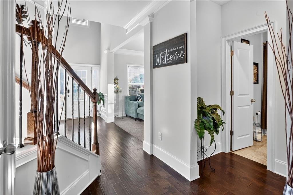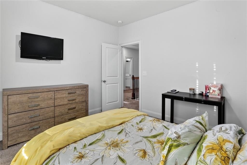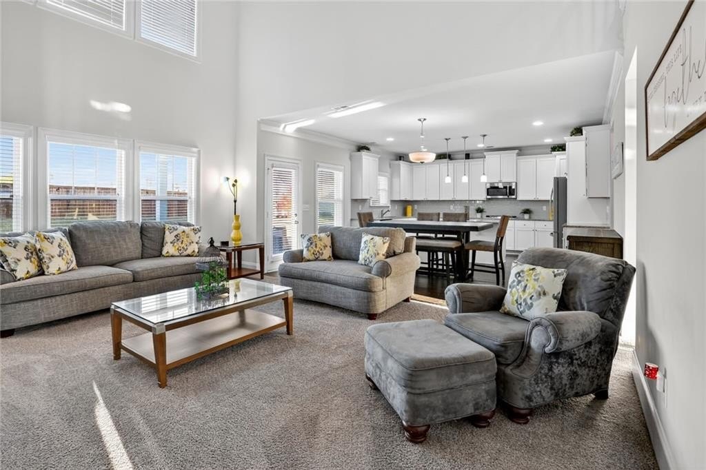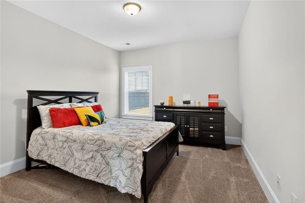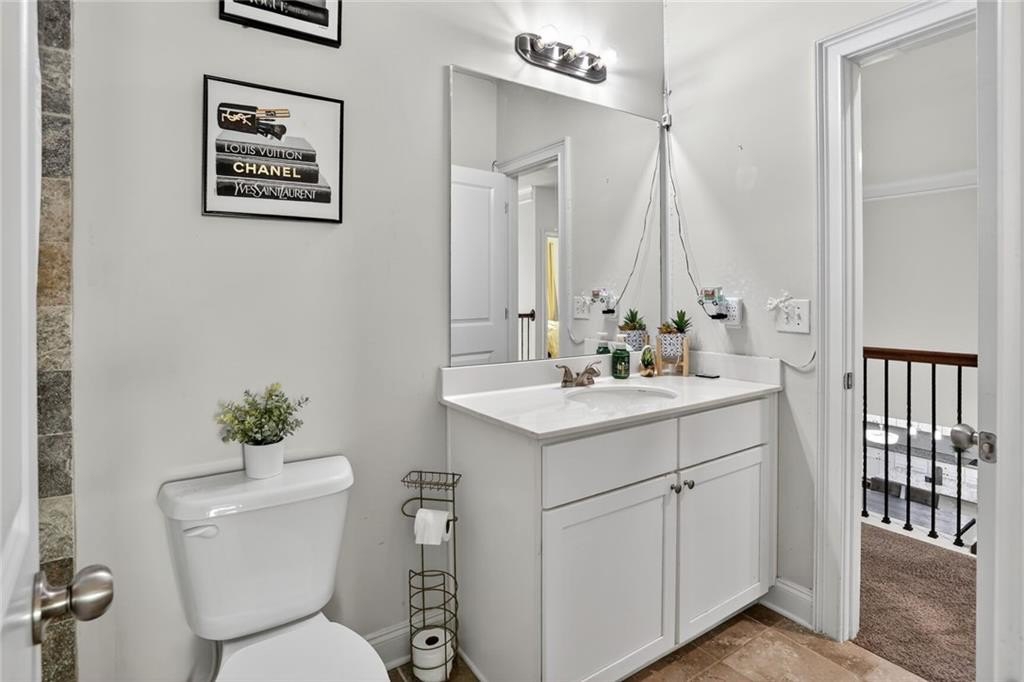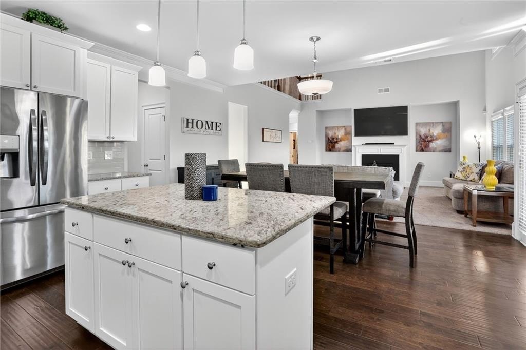 Stunning 5-Bedroom, 3-Bathroom home on a spacious Corner Lot. This beautifully maintained 4-sided brick home is located in a highly sought-after and well-kept neighborhood. Two-story foyer with hardwood floors leading to a formal dining room with coffered ceilings and a flex living room that can serve as an office. Open-concept design with gourmet kitchen featuring granite countertops, white cabinetry, stainless steel appliances, double ovens, a gas cooktop, island, and a walk-in pantry with views to a spacious two-story family room with large windows with abundant natural light and fire fireplace. Guest suite with a full bath on the main level, perfect for visitors or multi-generational living. Upstairs, the oversized primary suite. Primary bath includes a huge tiled shower, double vanities, and a huge walk-in closet. Three additional bedrooms share a Jack-and-Jill bath, plus an upstairs laundry room. Enjoy outdoor living on the covered back patio with a mounted TV, or unwind on the welcoming front porch. The side-entry two-car garage includes an electric car charger plug and plenty of storage space. Conveniently located near Cherokee Run Golf Club, I-20, shopping, dining, schools, and more.
