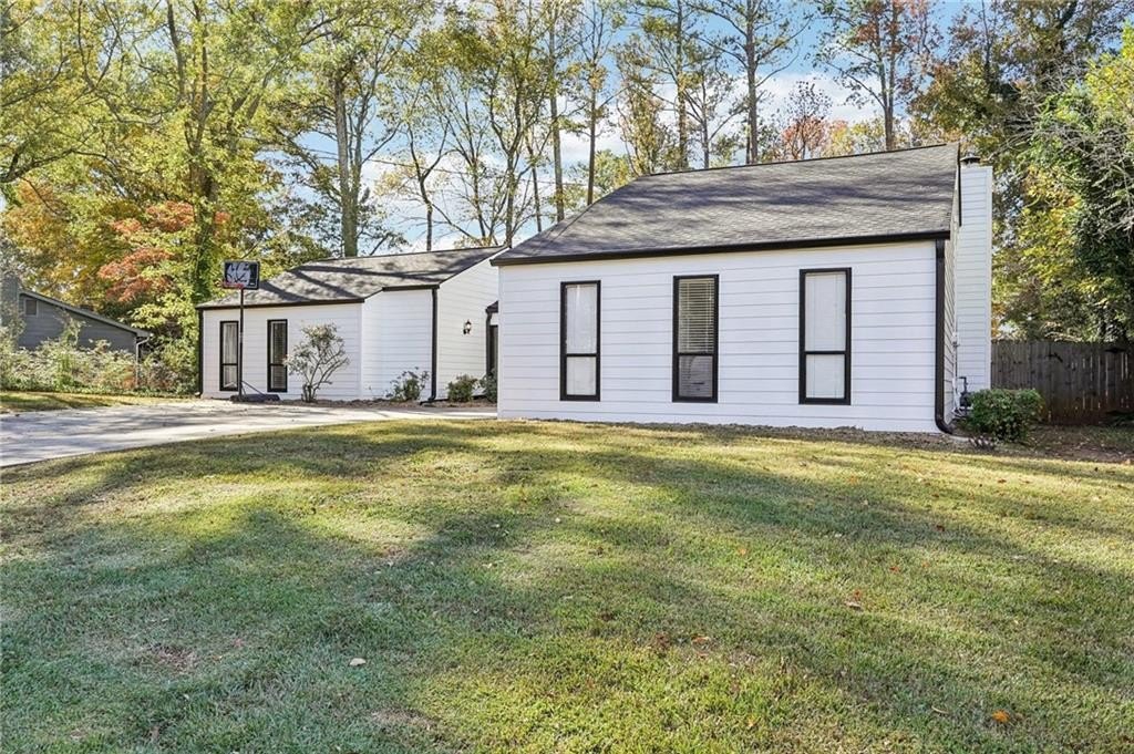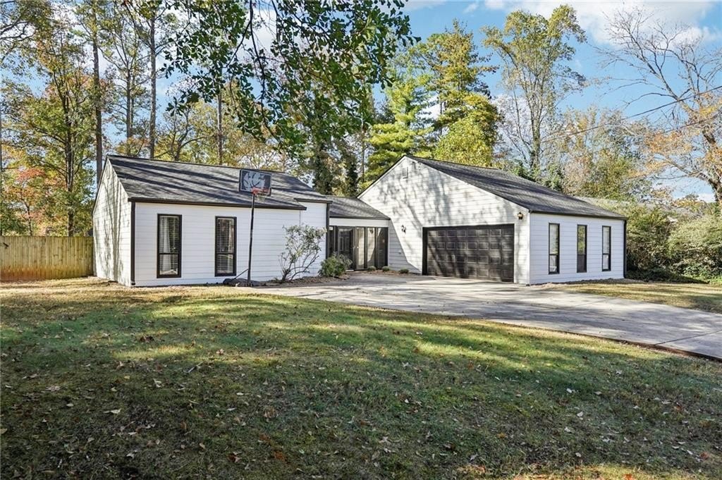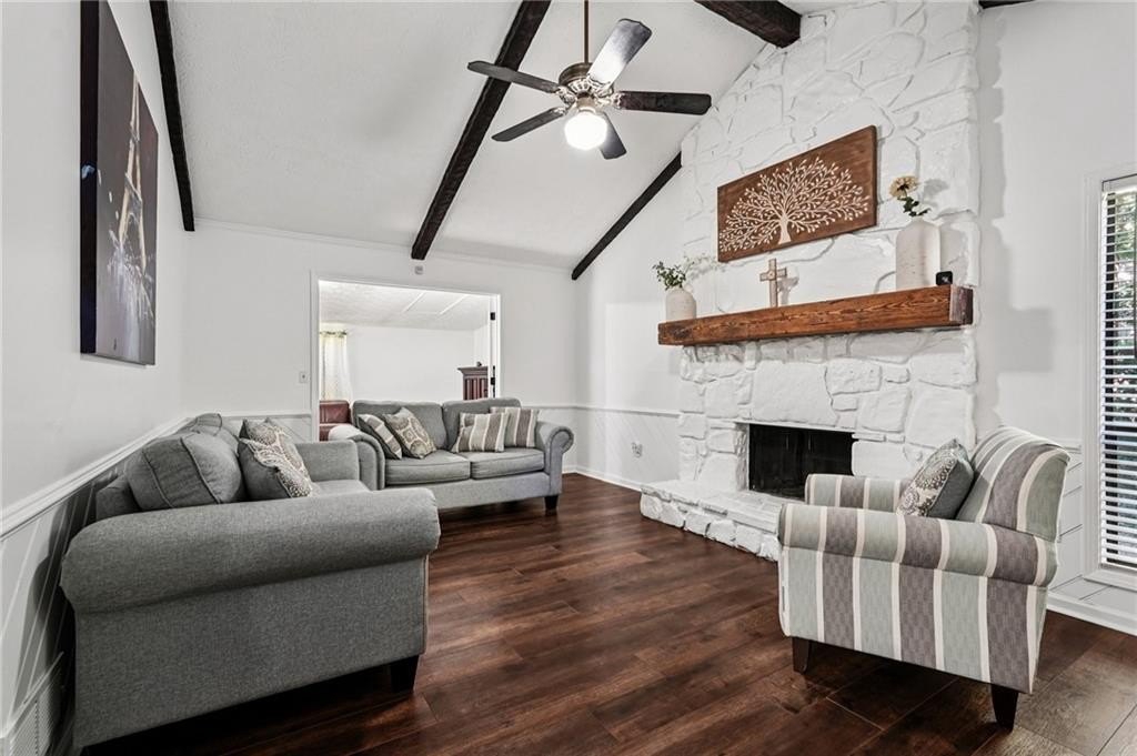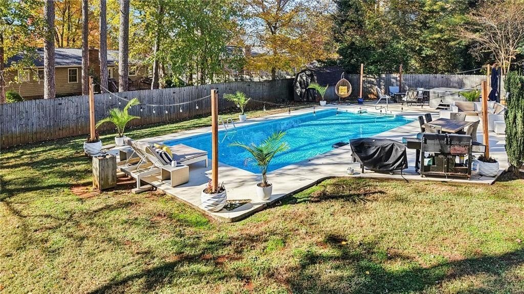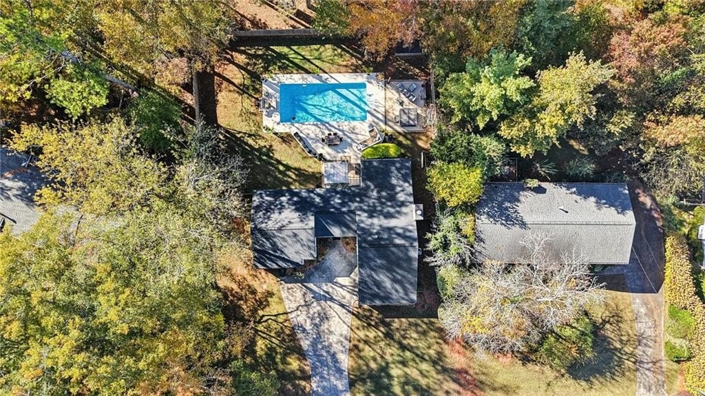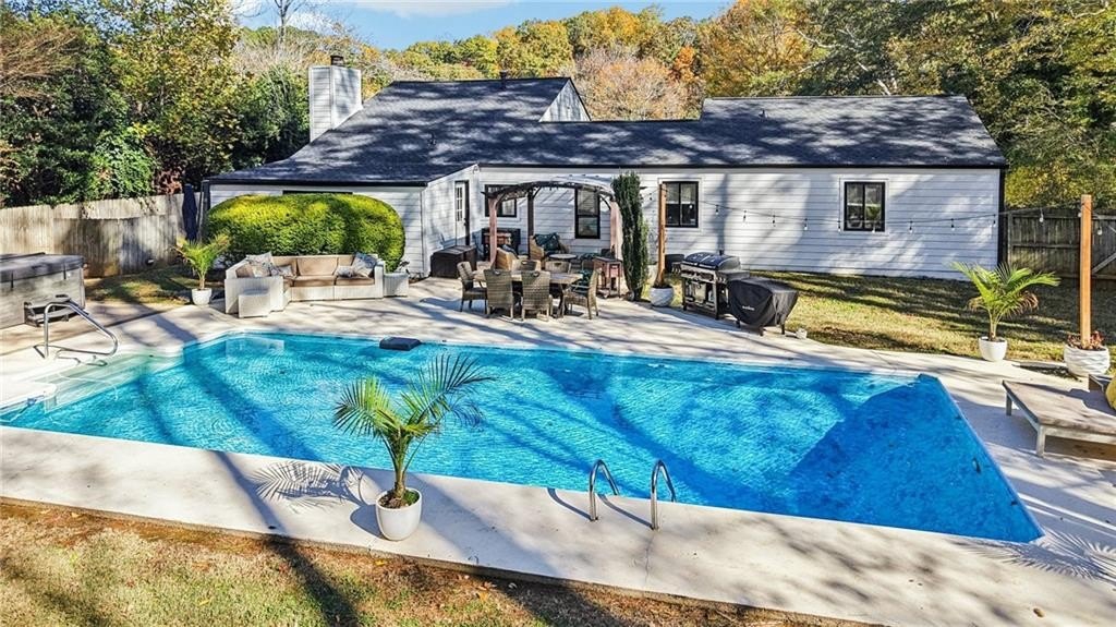 Welcome to this charming one-level 4-bedroom, 2-bath home in Marietta! Enjoy the inviting living room with beamed high ceilings, a beautiful stone fireplace, and French doors leading to your private backyard oasis. The fenced yard features an in-ground swimming pool and mature shade trees—perfect for relaxing or entertaining. With a separate dining room, unique curb appeal, brand-new siding and roof completed in October 2025, this home stands out from the rest. A true one-of-a-kind property that blends comfort, character, and outdoor living.