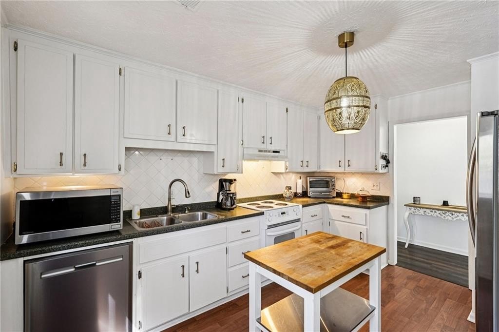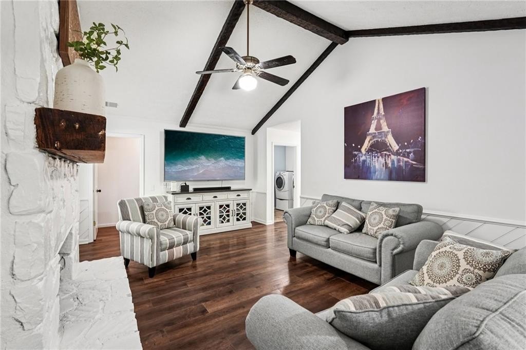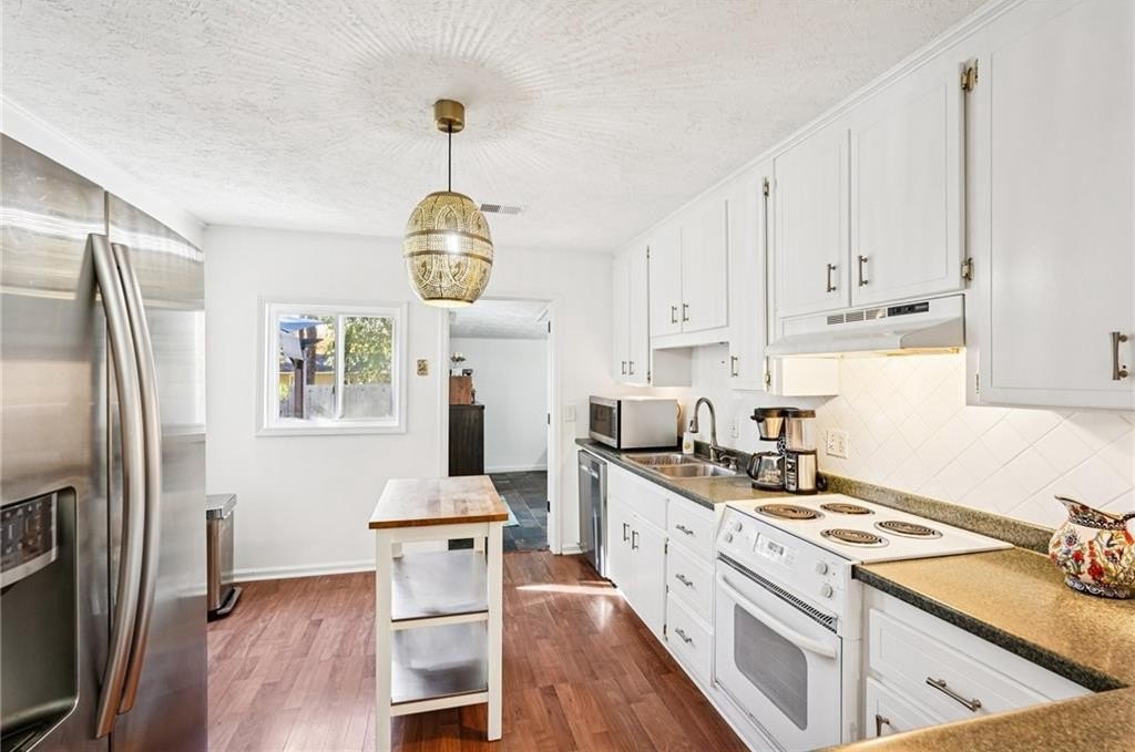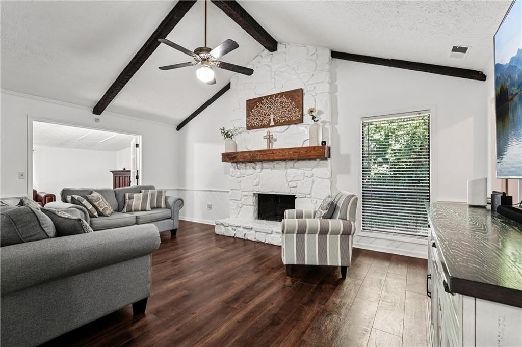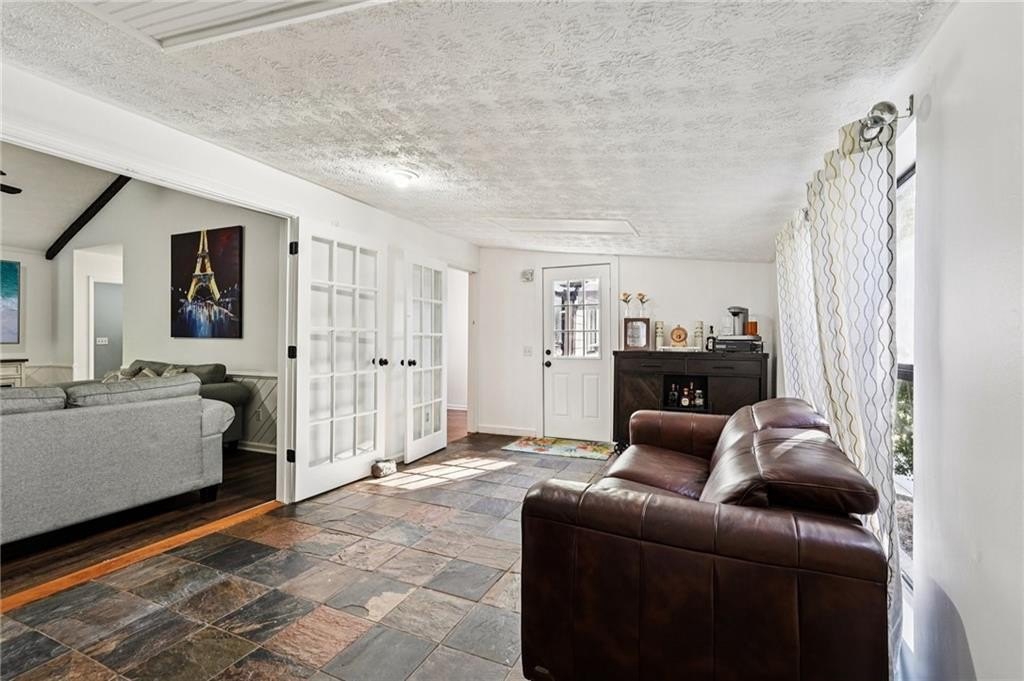 Welcome to this charming one-level 4-bedroom, 2-bath home in Marietta! Enjoy the inviting living room with beamed high ceilings, a beautiful stone fireplace, and French doors leading to your private backyard oasis. The fenced yard features an in-ground swimming pool and mature shade trees—perfect for relaxing or entertaining. With a separate dining room, unique curb appeal, brand-new siding and roof completed in October 2025, this home stands out from the rest. A true one-of-a-kind property that blends comfort, character, and outdoor living.