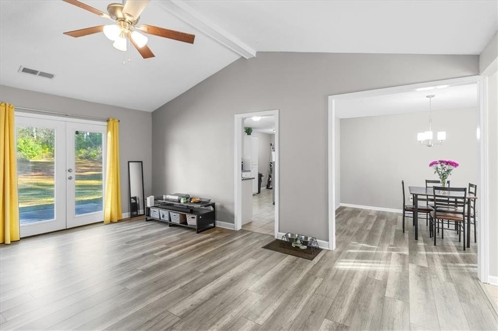Welcome to this well-maintained RANCH on a spacious, sprawling lot, offering the perfect blend of comfort, functionality, and potential. With its inviting covered rocking chair front porch, this home exudes charm from the moment you arrive. Side facing garage with epoxy flooring and spacious driveway provide ample parking for even a boat or RV. Inside, you’ll find LVP flooring throughout, creating a seamless and durable flow from room to room. The home features a formal dining room and a vaulted family room filled with natural light. The kitchen is complete with herringbone tile backsplash, granite countertops, and an adjoining laundry room for everyday convenience. The primary suite has a garden tub, walk-in shower, and a spacious closet. Two secondary bedrooms and another full bathroom. Both bathrooms have updated vanities with modern vessel sinks. Even a NEWER HOT WATER HEATER for peace of mind and efficiency. Outside, enjoy a patio area and ample yard space to design the outdoor retreat you’ve always wanted. Add a pool, fire pit, or your own custom features, all with NO HOA restrictions to limit your vision. Check out the virtually staged photos for a quick view of the possibilities for this great backyard!! Whether you’re looking for a comfortable primary residence or an investment opportunity to build instant equity, this home offers endless potential. Conveniently located just outside the hustle and bustle near the popular Covington Square, where you’ll enjoy access to local shops, dining, and year-round entertainment, as well as nearby Georgia International Horse Park, scenic trails, parks, recreational facilities, and great schools.