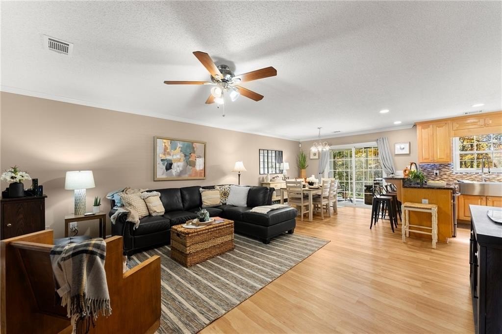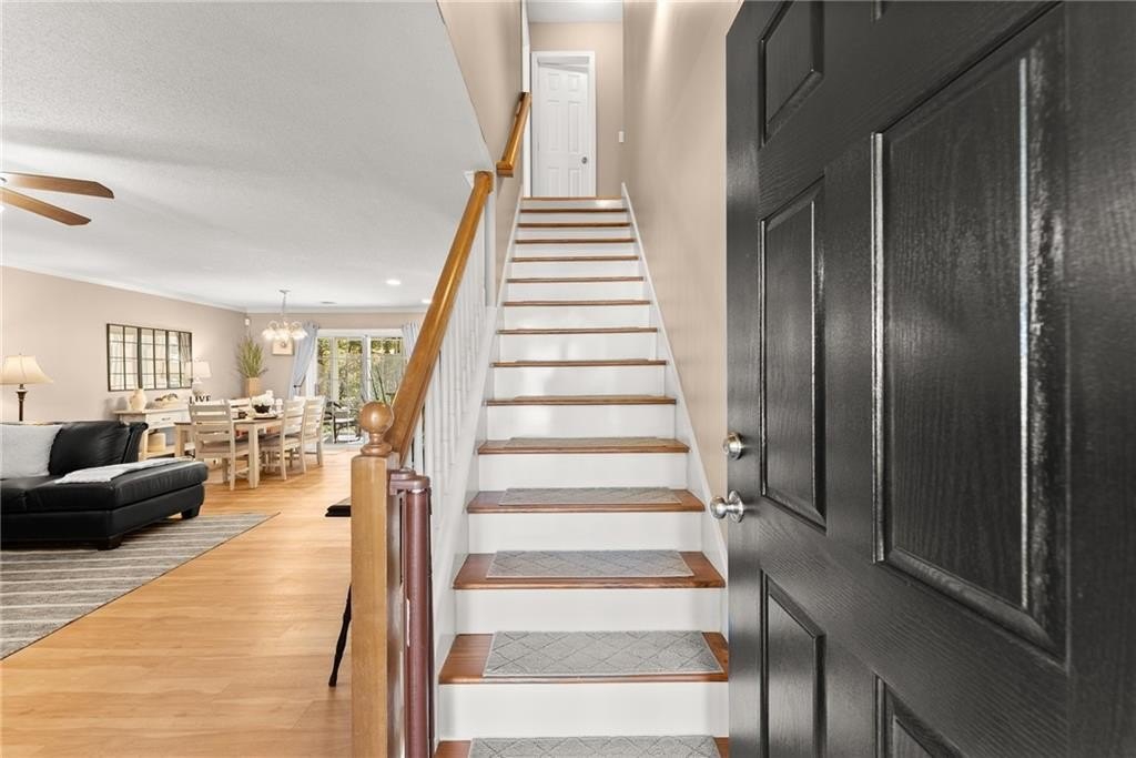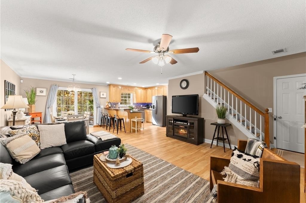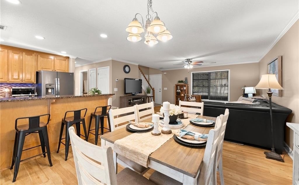 Step inside to an open-concept living room, dining, and kitchen area with modern upgrades throughout, including stainless steel appliances, granite countertops, a new backsplash, and sink. You’ll love the high-quality LVP flooring and fresh paint and the clean, inviting feel through the home.