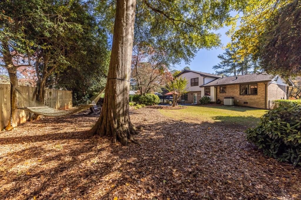 This extraordinary, wonderful home offers exceptional space and excellent custom updates making it a compelling value which rarely comes to market! Best features of this property include two beautifully renovated bathrooms, updated kitchen w/ subway tile backsplash and newer refrigerator and microwave/convection oven, oversized bedrooms, a newer water heater (2023), new luxury laminate flooring nearly, new quality fixtures, paint, and great finishes throughout, an updated 1/2 bathroom, a working wood-burning fireplace, laundry nook w/ washe/dryer included, plentiful closet space and extra storage, a large 2-car garage w/ newer garage door openers, a big fully-fenced backyard w/ patio, firepit, and new privacy fence. Plus, this huge corner lot property is on a quiet street with no through traffic, and it is a short distance to the coveted Mountain Park Elementary, Mountain Park, and a reasonable commute into Intown Atlanta, Decatur, and most destinations on the north side of Metro Atlanta. Make haste and plan your private tour of this excellent and lovely home ASAP!