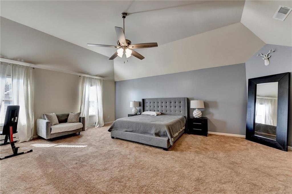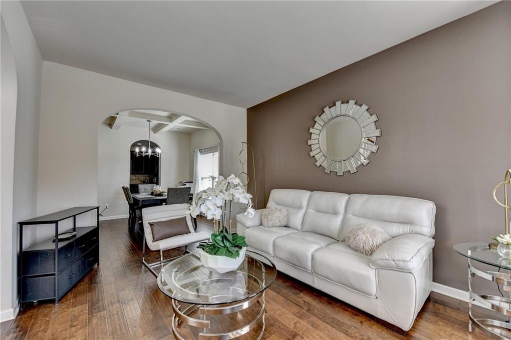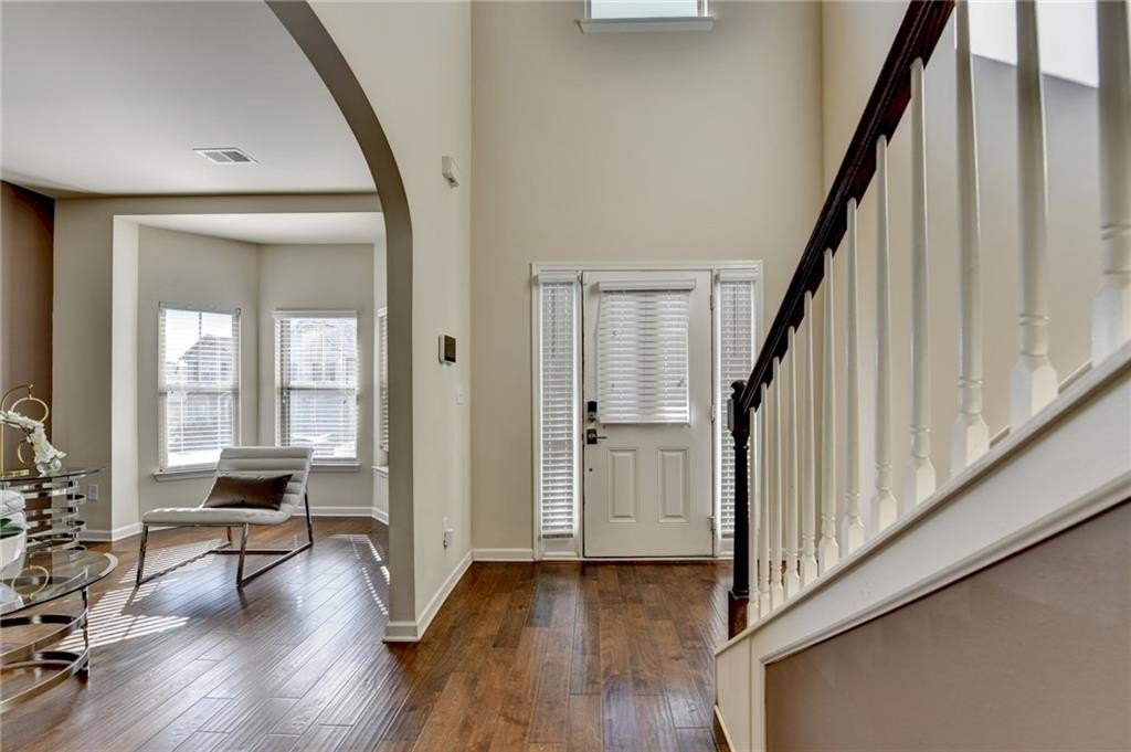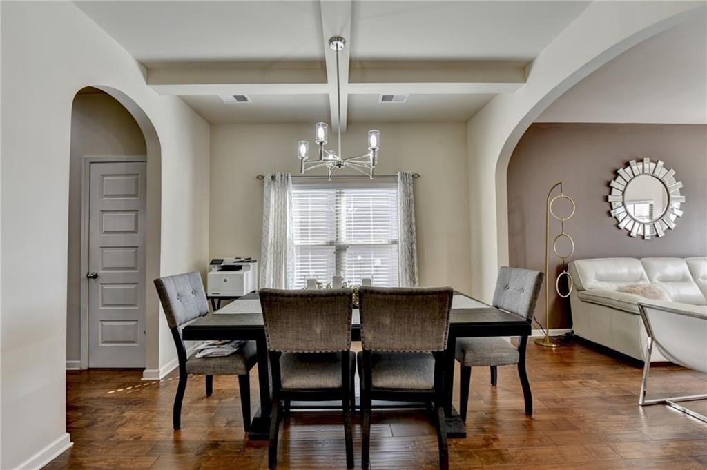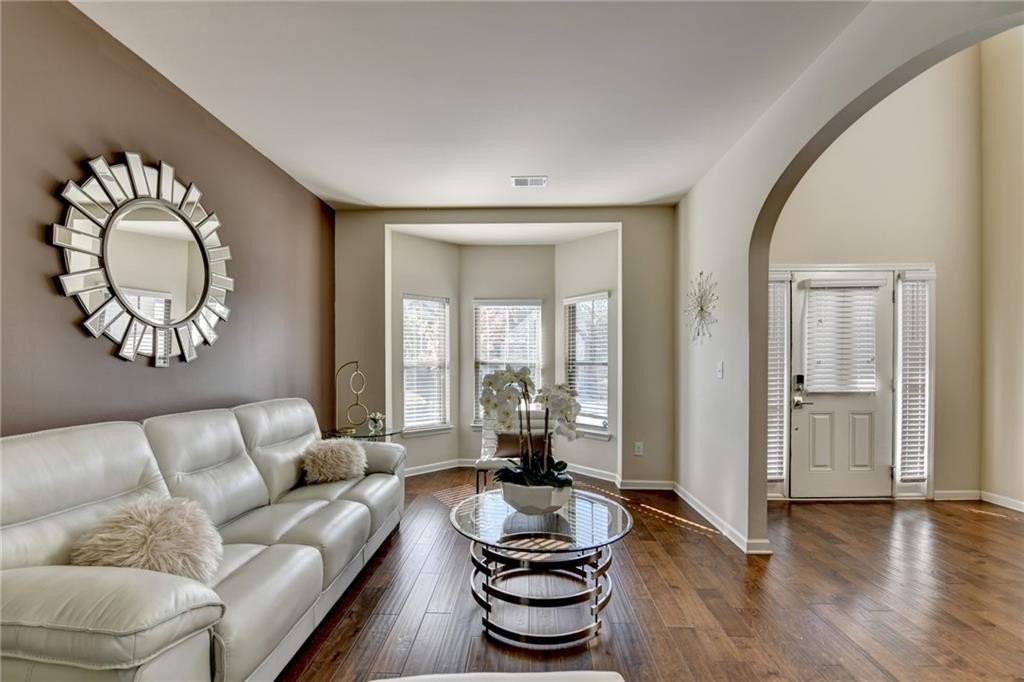 This home features a spacious, open-concept design with coffered ceilings, arched passageways, wood spindle stair railings, and hand-scraped hardwood floors. The expansive kitchen offers granite countertops, a large island, and generous counter space — all open to the family room with fireplace. The owner’s suite is oversized, providing plenty of room to relax and unwind.